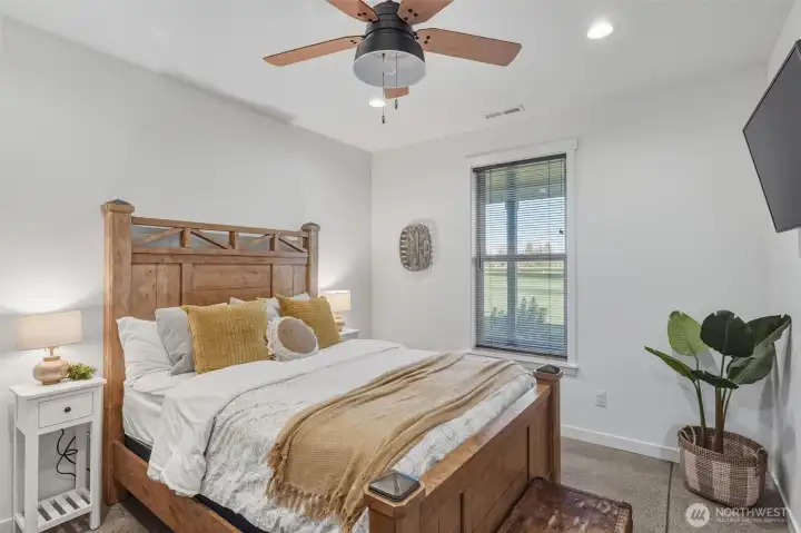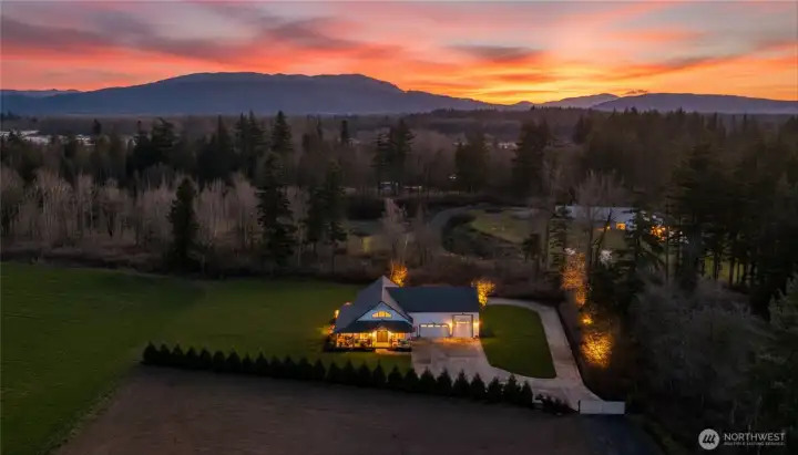 Immaculate, custom built home located on a private, gated 1.19 acres at the end of a small lane of high end homes. You'll love the single level living of high quality craftmanship with attention to detail inside & out! Includes an amazing ADU offering a private entrance & self-contained living, full bathroom with a sauna —perfect for multi-generational living, long-term guests, and is currently income generating as a successful short term vacation rental. One of the best features is the pristine 2004sf heated garage with tall ceilings, drive-thru RV doors, plenty of workshop area, lots of parking, & space for all the toys and hobbies. This home was designed for effortless living, with a sprawling open floorplan, polished concrete floors throughout, generous living spaces, vaulted ceilings, & abundant natural light. A chef's kitchen with high end appliances, walk in pantry, eating bar, dining space, & more. Private primary bedroom with a dreamy spa-like en-suite, walk-in steam shower, dual vanities with copper sinks. The seamless indoor-outdoor flow creates multiple spaces for entertaining guests and everyday enjoyment. The covered wrap around patio has a hot tub, plus a fireplace & tv area, and faces east looking over the big level yard and the stunning mountain views. An exceptional opportunity for many lifestyles, including those looking for a special home to downsize without compromise, create flexible living arrangements, or secure a one-of-a-kind Whatcom County estate.