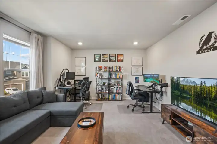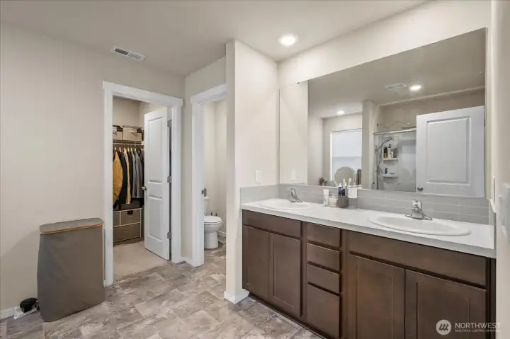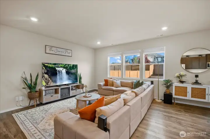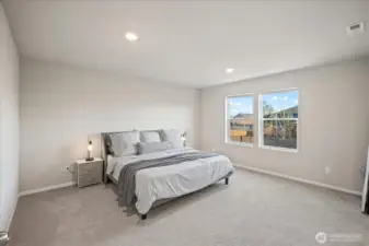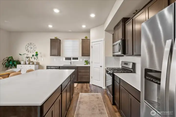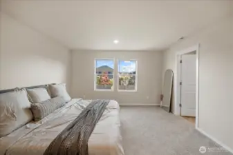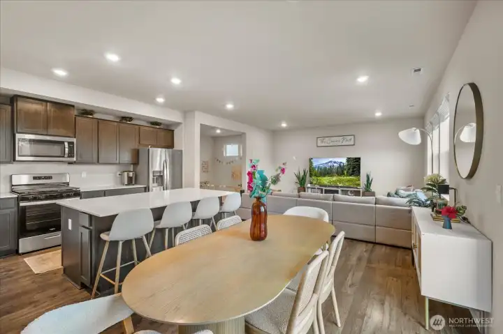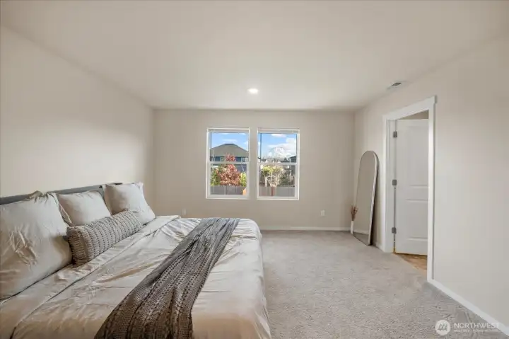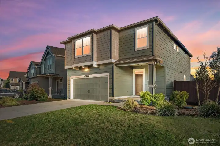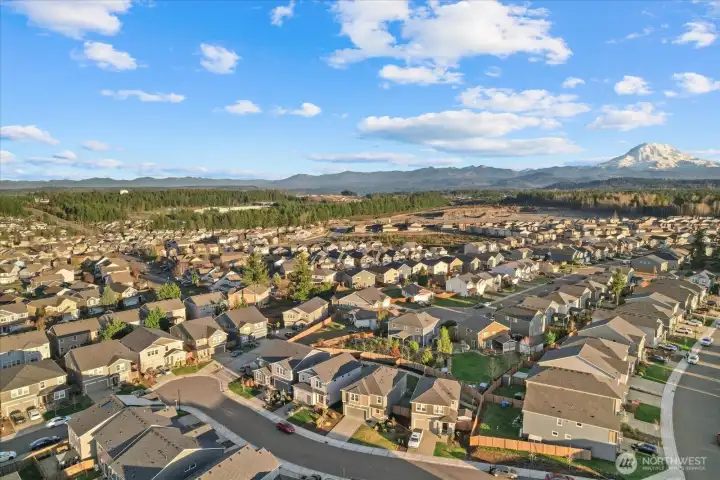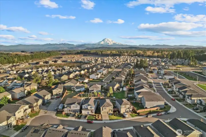 From the moment you arrive, this well-maintained home welcomes you with great curb appeal and beautiful Mount Rainier views. Step inside to a dedicated dining area and an open kitchen with quartz countertops and a walk-in pantry, perfect for everyday living and entertaining. A powder bath sits conveniently on the main level. Upstairs, enjoy 4 bedrooms plus a versatile bonus room ideal for a media space or 5th bedroom. The primary suite features a double vanity, private toilet room, large shower, and walk-in closet. A/C included, 2-car garage with 220V EV-ready outlet, and a large fenced backyard complete this move-in-ready home.