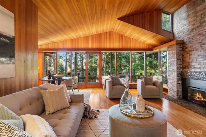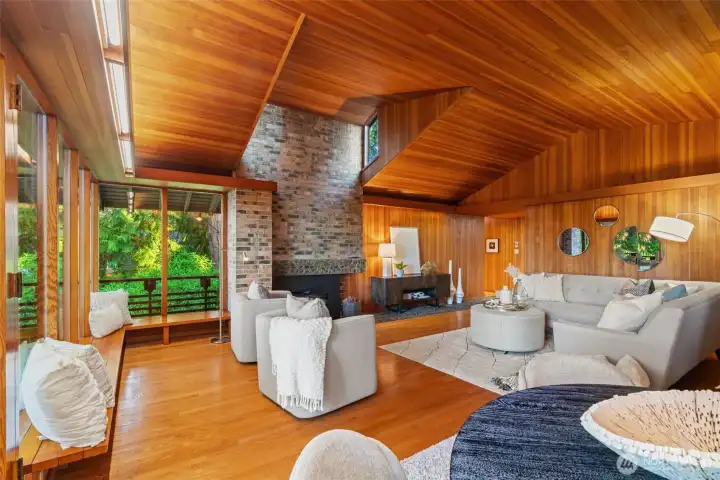 This distinctive Edmonds home showcases timeless design, enduring craftsmanship, and offers generous living spaces with a thoughtful layout. A striking great room sets the tone with flush fir walls, vaulted ceilings, and a custom fireplace that creates a warm and inviting centerpiece for everyday living and entertaining. The dining area features custom built-ins, adding both character and function, while the primary suite also includes beautifully integrated storage. Multiple living spaces provide flexibility, including a welcoming family room with fireplace, and an additional bonus or flex room ideal for hobbies, guests, or work-from-home needs. The kitchen includes an eating space and connects easily to the main living areas, supporting a natural flow throughout the home. Ample storage is found throughout, enhancing everyday organization. Set on a 23,087 sq ft lot, the property offers privacy, usable outdoor space, and room to enjoy the surroundings. With 3,107 sq ft of interior living space and a 2-car garage, this is a rare opportunity to own a home with presence, warmth, and enduring appeal in an established Edmonds setting.