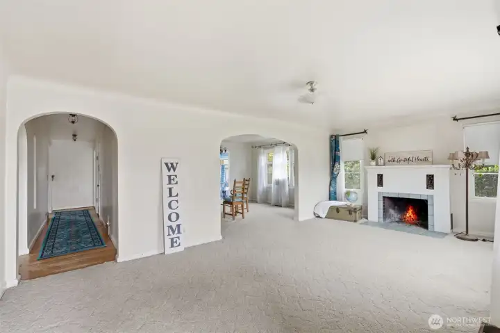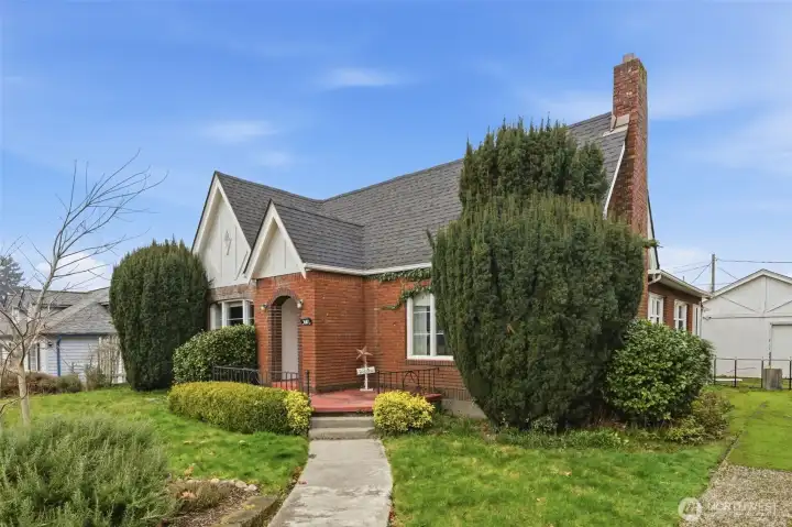 Charming mid-century brick home with 3 bedrooms and 2 baths, offering 2,652 sq ft of living space just a short walk to Centralia College and close to all major amenities. Enjoy spacious rooms with hardwood floors, a cozy wood-burning fireplace in the living room, and a kitchen with eating area. Features include an office, bonus room, covered ceilings, and elegant arched doorways. Step outside to a deck, fenced yard, and raised garden beds, plus a detached one-bay garage/workshop. The basement offers a partially finished room with a 3/4 bath and plenty of potential to create even more living space. A perfect blend of character, charm, and opportunity!