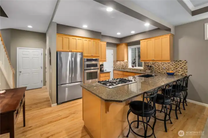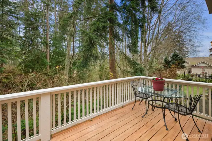 Welcome to Sundance, a quiet Mukilteo community backing to a lush forested greenbelt with a creek, this home offers natural beauty with peek-a-boo Puget Sound views and a highly convenient location, just 10 minutes to Boeing, close to downtown Mukilteo, and minutes from ferry access. The house features a spacious floor plan, plus a two car garage. In the kitchen, you will find granite counter tops, beautiful maple cabinetry, stainless steel appliances, a gas cooktop, and updated finishes that function well for everyday living and entertaining. Wood floors have been recently refinished, and new premium carpet has been installed throughout. The primary bathroom includes a walk-in shower and a standalone soaking tub. Enjoy winters cozying up around the gas fireplace and summers outside on a modest deck overlooking the greenbelt. Finally, this home provides peace of mind, with a clean pre inspection report that shows a well maintained, move-in ready home.