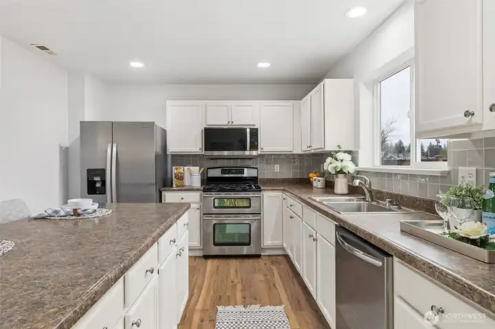Welcome home to Pasadera Heights! This residence is defined by its expansive proportions and thoughtful use of space, offering airy, inviting interiors that are as functional as they are comfortable. Flooded with natural light from oversized windows, this home feels open and uplifting. The top floor features three oversized bedrooms, all with walk-in closets, and two full bathrooms, along with a generous sitting area that can easily convert into a fourth bedroom. Recent updates include a brand-new roof (2026), a new water heater (2026), hardwood floor throughout and fresh interior paint. Thoughtful design ensures generous storage everywhere—combining style and practicality. Enjoy a private, fully fenced backyard and territorial or mountain views. Ideally located just minutes from Lake Stevens Costco and the Frontier Village shopping area, within the highly regarded Lake Stevens School District. The neighborhood offers quiet, well-maintained streets, internal walking trails, private playgrounds, and basketball courts, and is close to Cavalero Hill Community Dog Park. Pre-inspection available.
