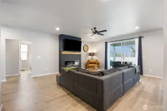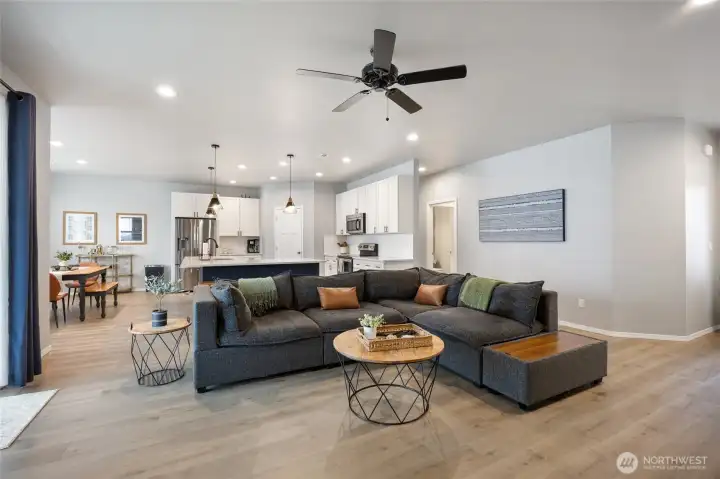 Amazing floorplan with 4 bedrooms, 3 baths on the main floor and bonus room above. This open-concept floor-plan includes Kitchen-Dining-Great Room with loads of natural light. The kitchen has breakfast bar on 2 sides, seating 6-8 people comfortably, quartz counter-tops, large island, stainless steel appliances, a coffee bar and walk-in pantry. Living room with electric fireplace with hidden storage. Primary en-suite with garden tub, tiled shower and walk-in closet. Upper floor bonus room is spacious with plenty of flexible space. 3- car garage, fully fenced back yard all just down the street from the grade school, middle school and high school. Close to town and Montlake waterfront park with boat launch and dock.