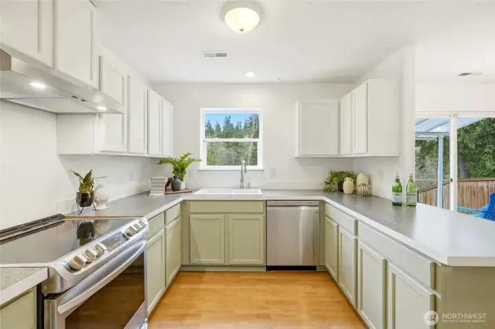 {A home that offers room to live, grow, and gather} Move-in-ready 3-bedroom home offers exceptional space, privacy, and flexibility just minutes from everyday amenities, tucked at the end of a quiet cul-de-sac and backing to a protected greenbelt (NGPA)! The open-concept main level is designed for both comfortable living and effortless entertaining, with multiple living areas that give everyone room to spread out. The updated kitchen features custom-painted cabinets, newer appliances, and a sleek induction cooktop, all flowing seamlessly into the heart of the home. A large utility room and pantry off the garage entry creates the ultimate drop zone and storage hub. Upstairs, space continues to impress with a generous loft—perfect for a second living room, office, or play area. The oversized primary suite is a true retreat with a 5-piece bath, double vanity, and expansive walk-in closet. Two additional bedrooms and a full hall bath provide room for guests, hobbies, or work-from-home needs. Hardwood floors add warmth throughout the main areas, while new carpet in the primary and fresh interior paint give a crisp, updated feel. Step outside to a spacious covered deck overlooking the greenbelt—ideal for year-round gatherings or peaceful mornings surrounded by nature. Plenty of off-street parking with long driveway, EV charger in the garage, newer roof and siding, and recently serviced furnace and major systems mean comfort and confidence for years to come.