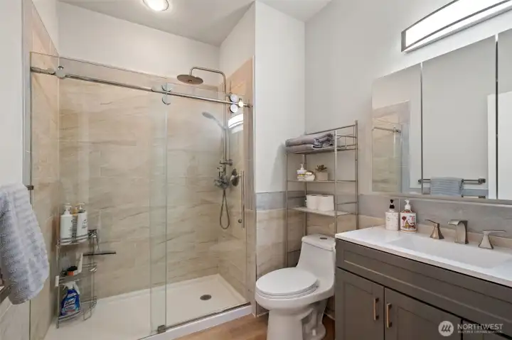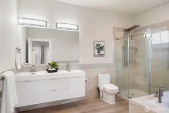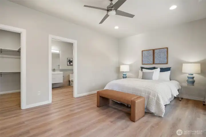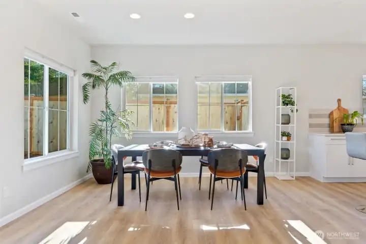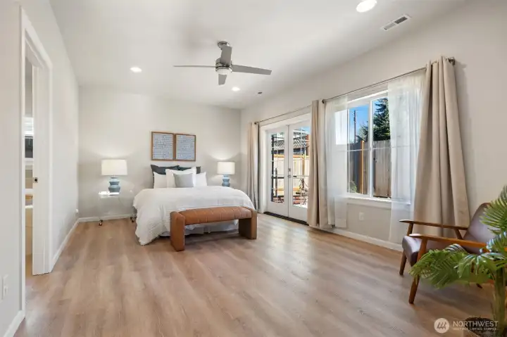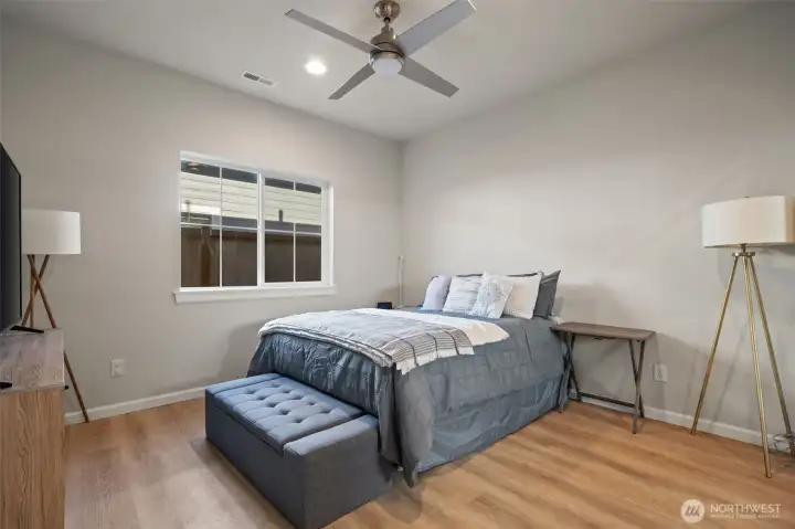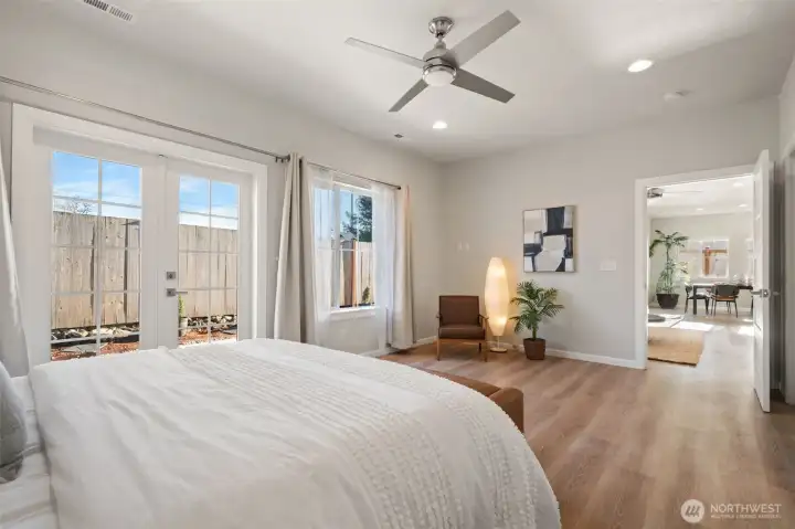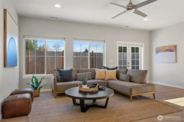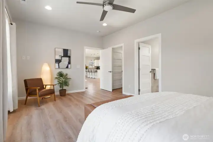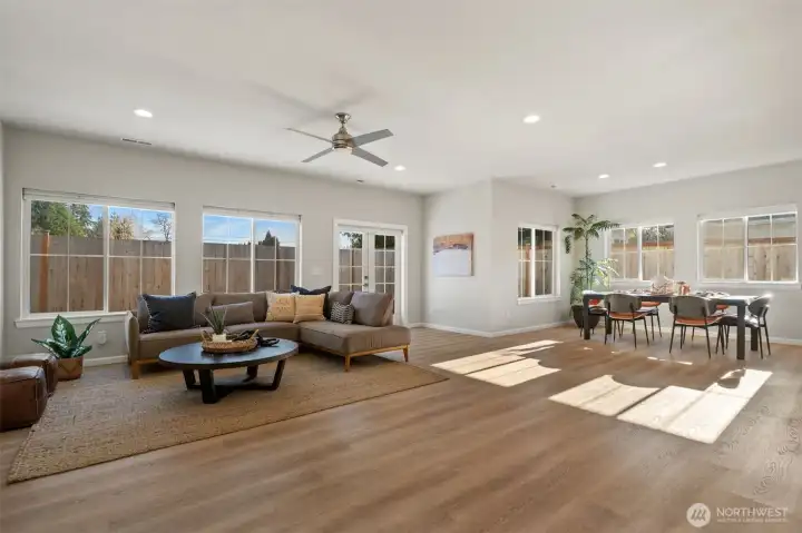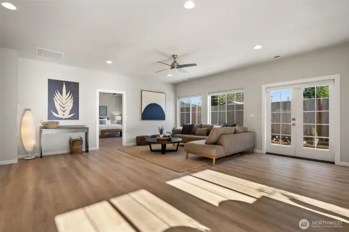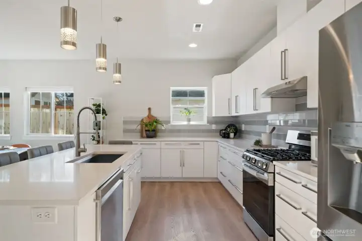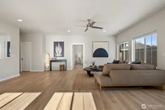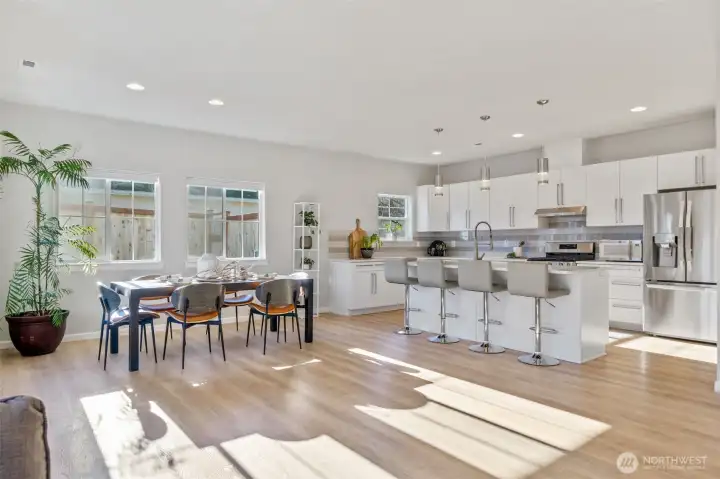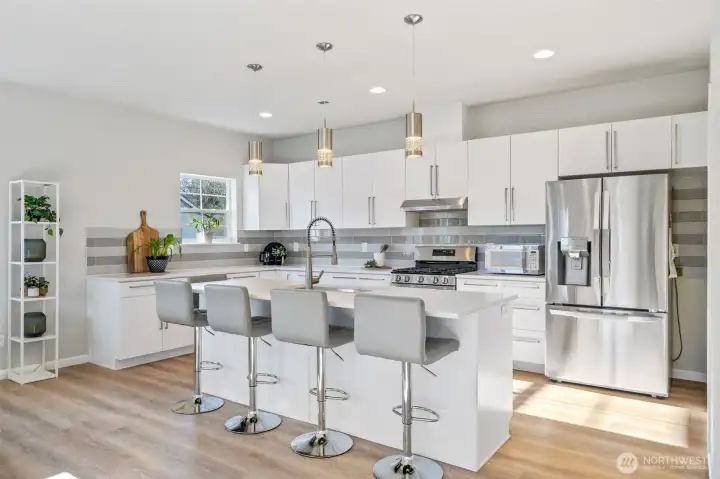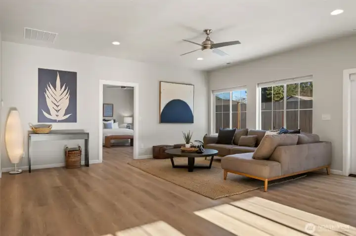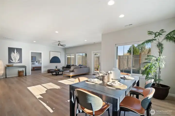 Welcome to 2198 Kevos Pond offering the perfect blend of accessibility, location and functionality all in a thoughtfully designed open concept home. Ideal location near Poulsbo schools, shopping and amenities with easy access to Bangor and PSNS. Built in 2021 this home was strategically designed for long term suitability and comfort with an open floorplan, no stairs, wide hallways and a low maintenance fenced yard. The home features a welcoming covered front porch opening to the foyer, with 2 of the bedrooms and a den/office to the left and moving forward opening to the great room area with a wall of windows flooding the room with natural light. Large dining area easily accommodates a table for 6 and if you choose to dine al fresco, the french doors open directly to the fenced yard with room for your outdoor furnishings. You'll love preparing meals in the kitchen with seating for 4 at the oversized island. White cabinetry, custom backsplash and charming pendant lighting create a welcoming space to be. Just off the kitchen is a spacious combo utility pantry to keep you organized. Primary bedroom just off the main living areas features a cooling ceiling fan, french doors to the yard and 5 pc bath with walk in shower, jetted soaking tub, toilet w/bidet and dual sink vanity. Laminate hardwoods throughout the home for easy upkeep. Let your broker know you want to see this one today!