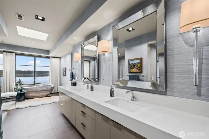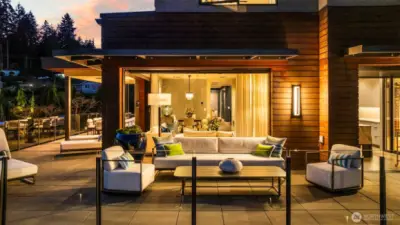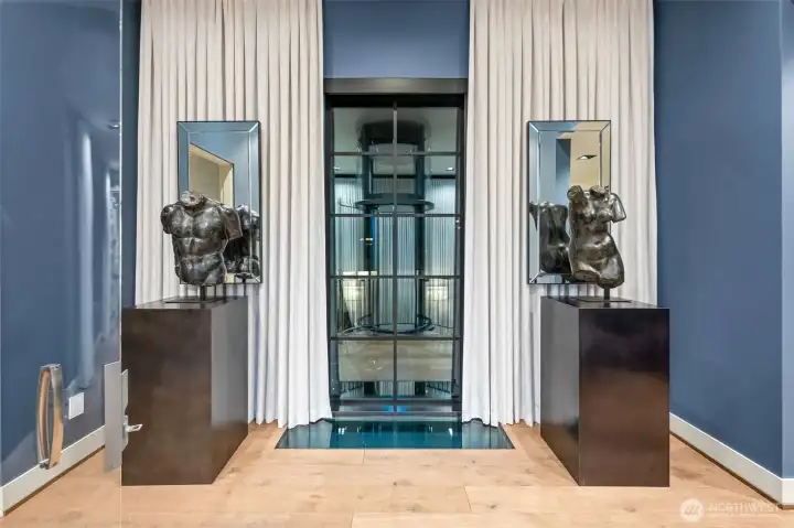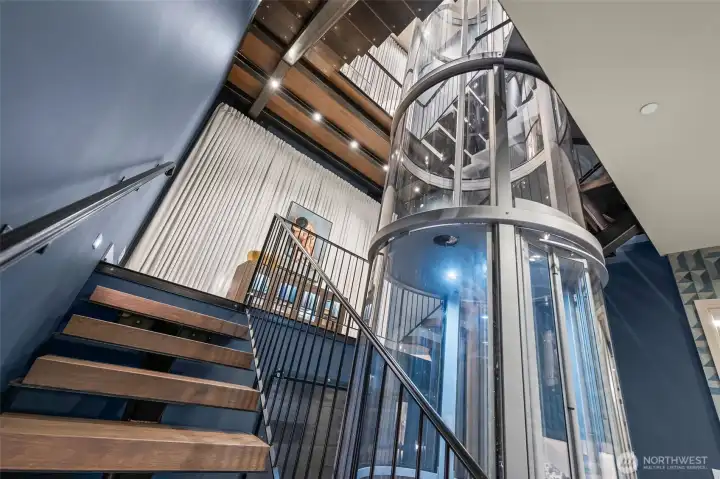 A fortress of modern design with a soul of silk. Located in an exclusive gated enclave on Reid, just moments from downtown Gig Harbor, this 4,669 SF custom residence by Hoppet Design & Construction offers a rare duality: the commanding strength of industrial architecture softened by organic luxury. While the exterior creates a striking silhouette with Hoppet’s signature steel and hard lines, the interior has been reimagined into a tactile sanctuary. It is a home that must be felt to be understood. Authentic Phillip Jeffries wallcoverings bring nature indoors, featuring rich textures of silk & sisal, bamboo, rice paper w/ Zebra grass, and "Chanel" inspired fabric. A masterclass in softness, custom floor-to-ceiling draperies cascade throughout, tempering the acoustics and standing in stunning contrast to the home’s industrial bones. The dramatic 3-story glass elevator is the transparent spine, connecting intimate spaces that encourage you to linger rather than just admire. The flow is seamless; expansive Fleetwood sliding doors dissolve the boundaries, merging the radiant-heated interiors with a wrap-around patio capturing stunning Sound views and an outdoor fireplace, creating a year-round indoor-outdoor retreat. Every surface is curated for tranquility, from the leathered quartzite kitchen slabs to the primary suite’s solid travertine soaking tub. Complete with a 1,100 SF 3+ car garage and 4 ensuite bedrooms, this is not just a modern marvel—it is a place to exhale.