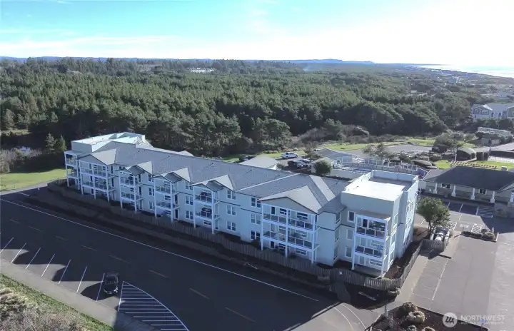 Surfer, Golfer, Beach Lover... This top floor 1 bdrm condominium is the ideal Short Stay Vacay! Handsomely furnished and fully equipped for your beach going pleasure! Vaulted ceiling, spacious great room and wide deck from which you glimpse both the ocean and lighthouse! Also directly across the street from the future 4th green of the Scottish Links Golf Course currently in the permit process! Buillding 12 is directly across from the heated pool, hot tub, sport court, fitness center, putting green, playground and Bbq patio for wonderful experiences on the coast. Direct beach access and easy access to the 2.5 mile paved oceanfront hiking/biking path leading from the lighthouse along the oceanfront to the jetty then on to the marina! No matter your reason for escaping the daily grind... this beach pad is the perfect landing.