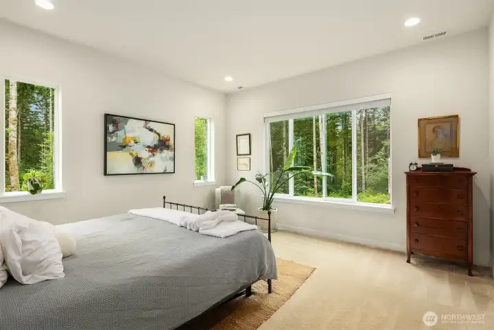 Beautiful 2021 Pulte home featuring over 3500 SF, sited on a lot just shy of a full acre. 4 BR's. Primary and 2 additional BR's on the main level along with den, living, dining, chef's kitchen with island, and covered upper-level deck for inside / outside living. Spacious Pantry and Laundry Rooms off the kitchen. Downstairs the daylight basement offers an additional BR, full bath, and enormous family room with oversized sliders to a covered, walk-out ground level patio. 3 Car garage and large terraced back-yard that offers plenty of room for gardening, relaxation and play. Lot is bordered by greenspace on two sides, with easy access to community trails through the forest. Don't miss this opportunity in Glenmore Highlands!