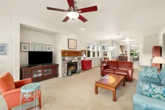 Welcome home—ideally located within walking distance to tennis courts. This charming property features attractive stone accents, a side entry, and a spacious living and dining room combination perfect for entertaining. The main windows run along the west-southwest side of the home, bathing the living room, dining area, and kitchen in abundant natural light. A spacious, light-filled sunroom sits just off the kitchen, which features Silestone countertops, maple cabinetry, pantry, gas range, refrigerator, and dishwasher. The spacious primary suite offers a walk-in closet and a beautifully tiled shower with ledge, along with a double vanity. A generous second bedroom provides versatility for guests or a home office. The inviting living area includes a large TV niche and a stone fireplace with mantle. Step outside to the covered deck with railing—perfect for year-round enjoyment. The property is fully fenced and includes HVAC, underground sprinklers, and thoughtful finishes throughout. Recent maintenance provides added peace of mind, including furnace and heat pump maintenance completed on 1/12/2026 and crawl space inspection and maintenance on 1/16/2026. The home is also equipped with a Noritz EZ Series Pro tankless gas water heater installed on 8/25/2025. The home was freshly painted just two years ago. A newer HVAC system, installed seven years ago, has been consistently and professionally maintained.