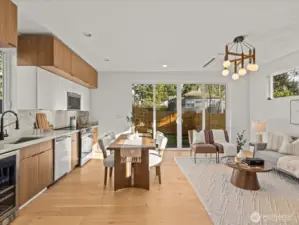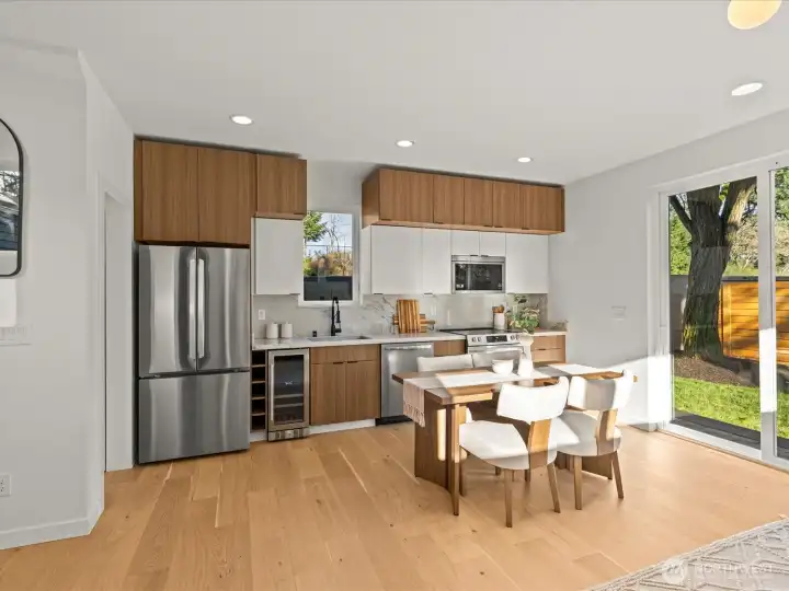 This meticulously crafted house is designed and built with every detail in mind. Living area with 9 ft ceilings and glass doors overlook and connect to the green backyard. Instagram worthy kitchen comes with a wine/beverage fridge and double wall cabinets to maximize storage. High end finishes such as engineered hardwood floors, wool blend carpet, Elfa closets, HRV system for clean air and 3 skylights to bring in ample natural light without compromising privacy. Watch the sunset from the front porch overlooking the large front yard. Super convenient location a block away from Sprouts Farmers Market and plenty of retail & dining. Walk east to North Acres Park and light rail station on 130th scheduled to open this year will bring more value to your investment. Plenty of street parking on this dead-end street. Easy access to I-5 express lanes will bring you home from downtown in minutes. No dues!