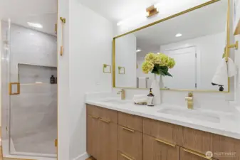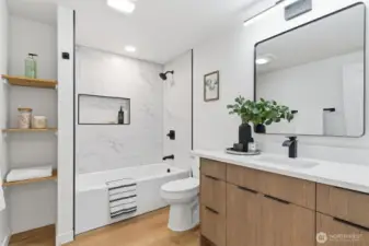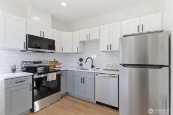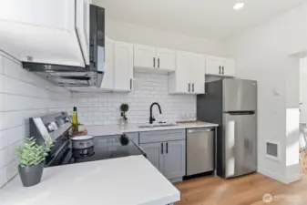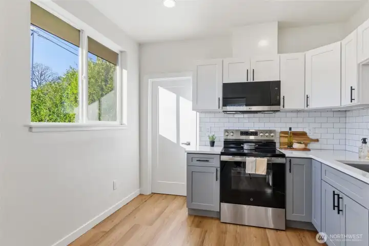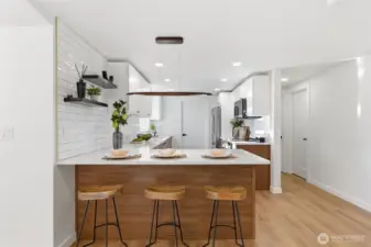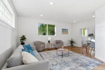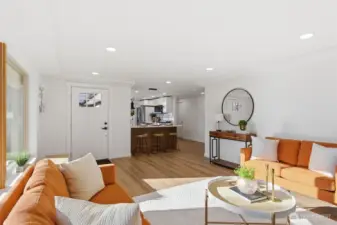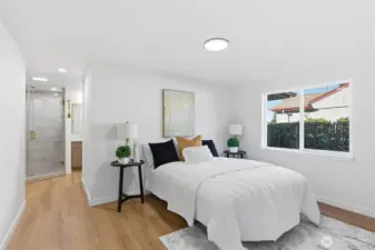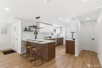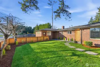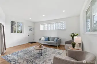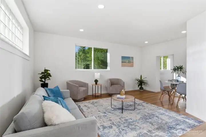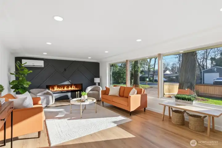 Stunning fully updated rambler offering elevated design, abundant natural light, and exceptional versatility. The main residence features 3 bedrooms and 2 spa-inspired bathrooms, complemented by a private 1-bedroom, 1-bath mother-in-law suite—perfect for refined multi-generational living, guests, or boutique rental potential. Expansive picture windows bathe the interiors in natural light, accentuating the open-concept layout, wide-plank wood flooring, and curated modern finishes throughout. The designer kitchen boasts custom modern cabinetry, sleek countertops, statement tile backsplash, and an oversized island ideal for entertaining. The living room is anchored by a striking contemporary fireplace with a dramatic accent wall, creating a sophisticated yet inviting atmosphere. Bathrooms feature luxe tile work, dual vanities, and premium fixtures for a spa-like experience. Enjoy a fully enclosed, private outdoor retreat offering seclusion, along with additional parking for convenience. A rare, turn-key opportunity blending luxury, flexibility, and modern living.