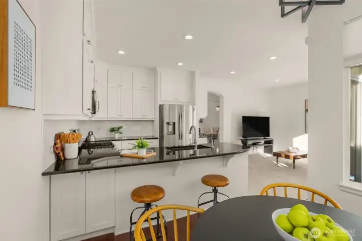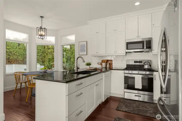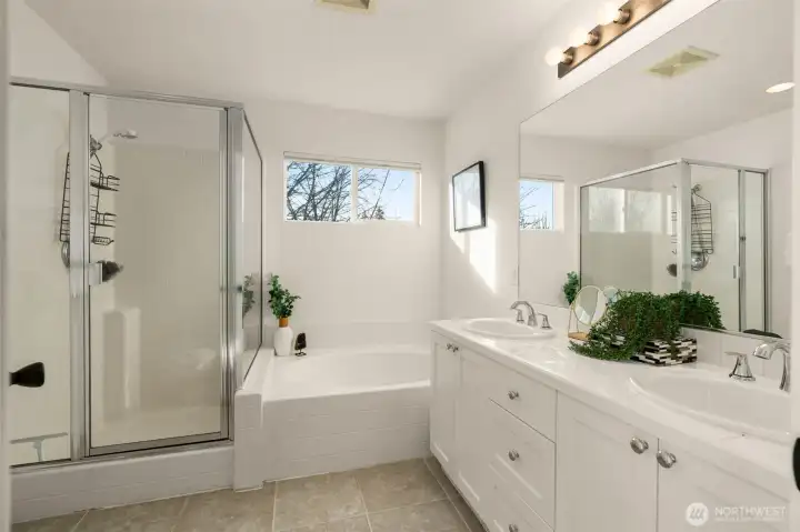 Welcome to this immaculate and updated quality-built home in the desirable Enclave community. You'll love the open layout with high ceilings and abundant natural light! The main level features a huge living room with gas fireplace, dining space, smaller family room off the kitchen and an updated kitchen w/eating area and slider to a private backyard. Upstairs offers three spacious bedrooms, including an oversized primary suite with 5 piece bath and walk-in closet. The lower level has substantial space for a rec room, 4th bedroom or office w/laundry and half bath. One of the few homes with a generous driveway. Close to Totem Lake, Juanita Beach, and downtown Kirkland plus quick I-405 access. Top-rated LW schools.