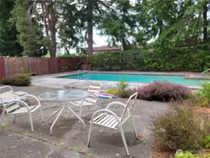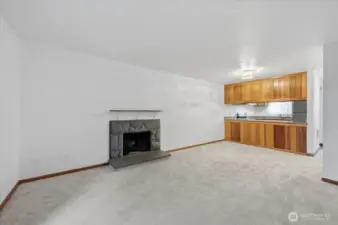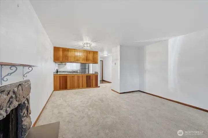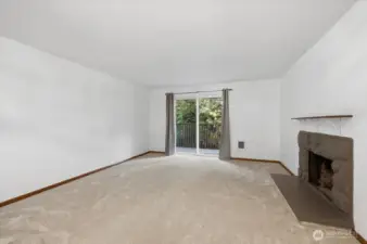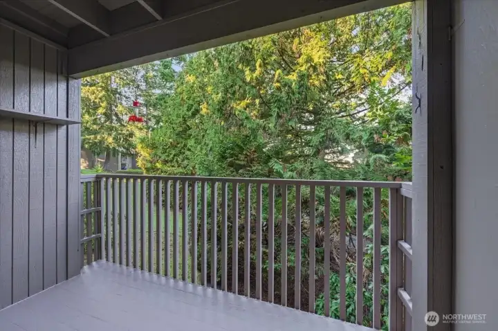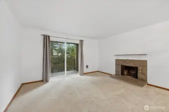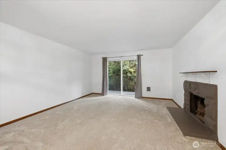 This is the affordable home you've been waiting for! Refreshed and ready to move in. NEW paint, refrigerator, carpet, hot water tank, and kitchen counter. All the appliances are newer and included. Cozy wood-burning fireplace. LEVEL ACCESS and NO STAIRS! One assigned parking space + ample guest parking. 2 PETS up to 25 lbs. This peaceful END UNIT condo is nestled in mature landscaped grounds with tranquil views of the trees from the living room, deck, and primary bedroom. The 2nd bedroom is non-conforming because the closet contains the hot water tank and a full-size washer and dryer. It has a window and would also make a great office or hobby room. In addition to the storage off the deck, there is an assigned storage locker. The community features an outdoor pool and a clubhouse. Walkable to restaurants and the bus. The HOA dues cover common area and exterior maintenance, water, sewer, garbage, and road maintenance. Low-maintenance living in an excellent location just minutes from I-5, I-405, Hwy 99, park-and-ride, light rail, transit center, shopping, hospital, beaches, parks, and all the amenities this area has to offer.