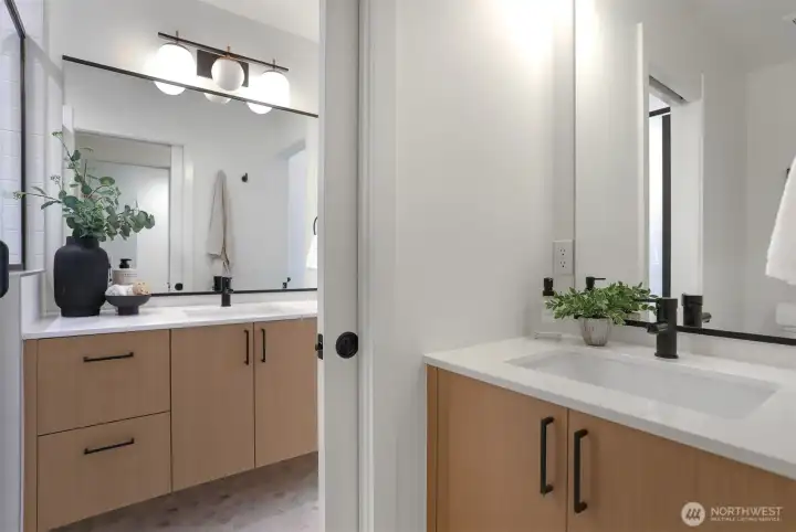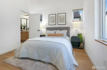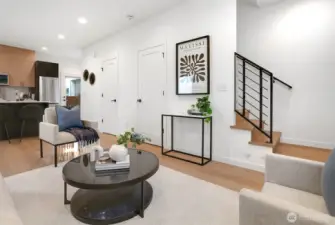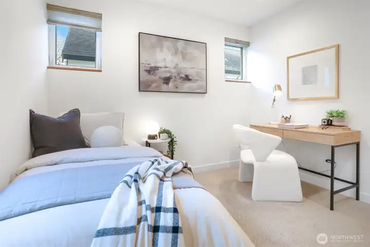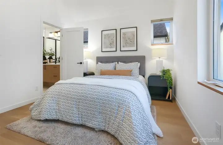 Convenience and comfort rule in this 2023 contemporary home. Minutes to Northgate & light rail, by road or pedestrian overpass. Whether working from home or commuting, this location is prime for its easy access to all transit routes and dining & entertainment options. Take advantage of the Kraken ice complex, theater, shopping, transit hub, and nearby parks. While so close to these conveniences, the home experience is quiet and private. A heat pump maintains comfort in all seasons, and the floor plan is smart and efficient. An open concept on the main floor lets you cook & entertain with ease. The fenced yard is easily accessed from the living area, making pet care a breeze and providing for outdoor activity. Upstairs, a spacious primary suite is complemented by a generous guest room/office, each room enjoying natural light and territorial views. Dedicated parking complete with EV charging. It's a wonderful place to call "home" - come see for yourself!