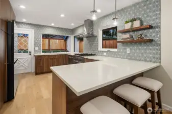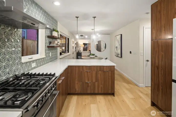 Great urban living inside and outside with this spacious mid-century Greenwood home featuring tranquil backyard. Located on a tree-lined street, the home sits in one of Seattleās most desirable residential neighborhoods. Sunlit interiors feature timeless elements like hardwoods and two inviting fireplaces. Formal dining area and remodeled eat-in kitchen with stainless appliances. Three comfortable bedrooms on main level including primary with ensuite bath. Bonus lower level with 2nd living area and private guest bedroom/home office. Deck and patio highlight fenced outdoor entertainment space. Attached garage for convenience. Close to commuter routes and eclectic dining/cafes as well as relaxing parks.