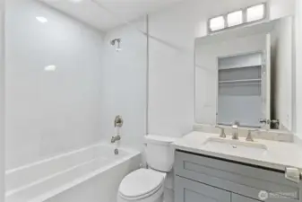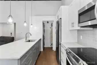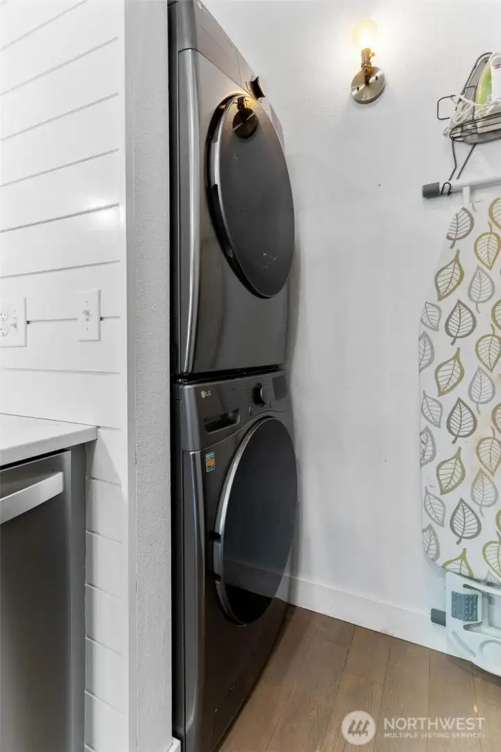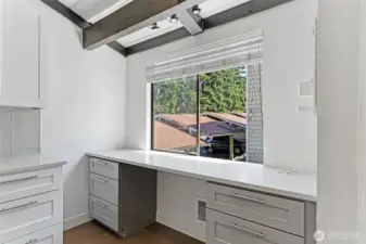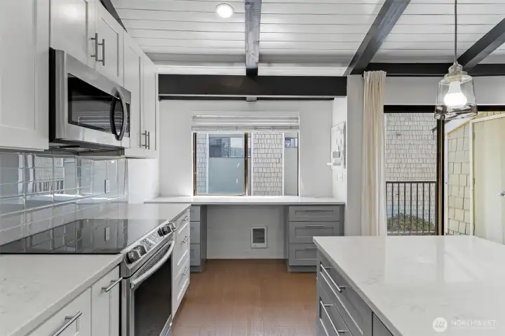 This modern 2-bed, 2-bath condo rises above the ordinary with soaring vaulted ceilings and refined finishes rarely found in condo living. Sunlight fills the open-concept layout, highlighting recessed lighting, sleek quartz countertops, stainless steel appliances, and a cozy wood-burning fireplace that adds warmth and character to the living space. Thoughtful touches include a built-in workspace, in-unit laundry, and expansive attic storage—offering exceptional functionality without sacrificing style. Ideally located near Fred Meyer, Safeway, and with effortless access to I-5, 405, and 167, convenience is truly at your doorstep. Well-managed HOA with healthy reserves, no current assessments, and future updates planned for siding and windows. Come experience the comfort, light, and livability that make this home truly stand out.