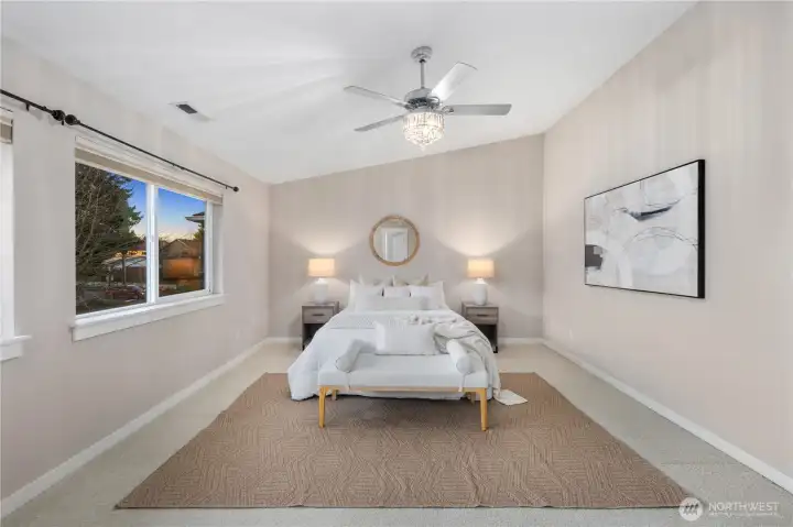 Tucked away in the VerCello neighborhood, this residence offers a rare blend of quiet luxury, space, and intentional design. Set behind a long, private driveway with no shared access, the home feels secluded from the moment you arrive. Inside, open living spaces unfold beneath high ceilings, framed by architectural pillars, refined millwork, and a striking stone fireplace that anchors the main level. Natural light fills the home, creating an effortless flow ideal for both everyday living and entertaining. The kitchen balances function and privacy, thoughtfully positioned to feel connected yet calm, while flexible dining and secondary living spaces adapt easily to changing needs. Upstairs, vaulted ceilings and skylights create an airy retreat, highlighted by a serene primary suite with fireplace, soaking tub, and a walk-in closet that connects directly to the laundry for everyday ease. Outdoors, mature landscaping, subtle lighting, and a fully fenced yard enhance the sense of privacy, while smart systems throughout the home support comfort and convenience. A refined yet welcoming residence where privacy, livability, and thoughtful design come together seamlessly. Tankless Water Heater + Integrated Water Filtration System + Smart Home. A lifestyle!