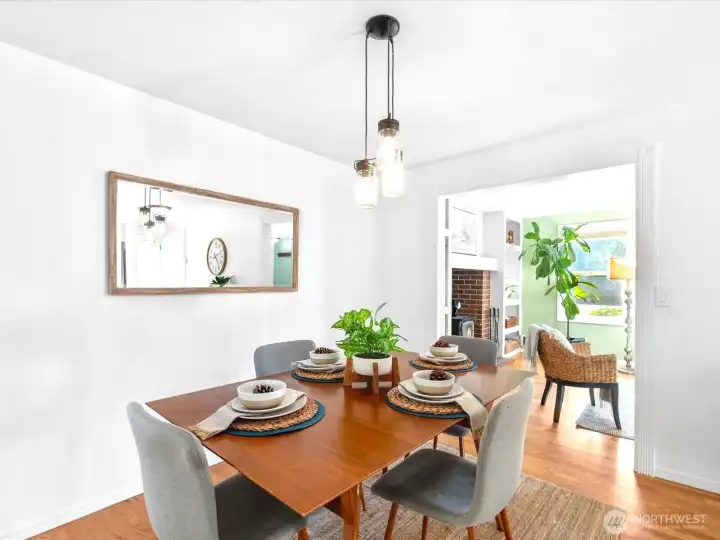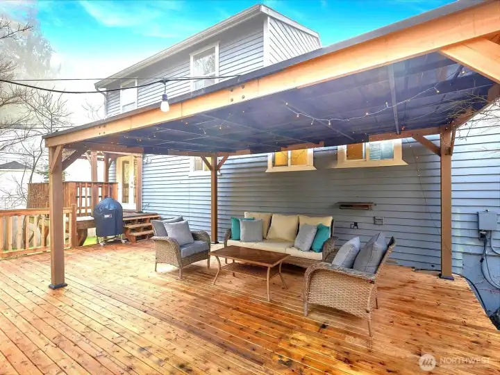Pre-inspected! Nestled in the heart of the scenic Snoqualmie River Valley, this adorable two-story home sits on a quiet cul-de-sac in charming downtown Duvall. Offering 3 bedrooms and 1.5 baths, the home blends classic character with thoughtful updates. Warm hardwood floors lead to a cozy living area centered around a wood stove set in a brick-wrapped alcove, flanked by built-in shelving—perfect for relaxed evenings at home. French doors open to an expansive entertainment deck, ideal for hosting or enjoying peaceful valley evenings. The cheerful kitchen features newer appliances, updated countertops, and timeless subway tile, making it both stylish and functional. Upstairs, the inviting primary bedroom includes an ensuite bath, accompanied by two additional bedrooms that offer flexibility for guests, home office, or hobbies. Outside, enjoy a huge, private, fully fenced and terraced yard with room to garden, play, or unwind, plus a storage shed and a convenient two-car garage. All of this is just steps from Cherry Valley Elementary, Microsoft’s Commuter stop, scenic trails and parks, and the shops and restaurants of historic downtown Duvall. This is a rare opportunity to enjoy a vibrant, walkable downtown lifestyle, exceptional outdoor recreation, and an easy commute to major employers, all while surrounded by the natural beauty of the Snoqualmie River Valley! Welcome Home!