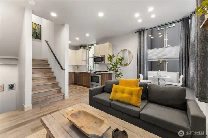 Welcome to this modern 3-story condo in the heart of Ballard! Built in 2021, this well-designed home features 2 bedrooms, 1.75 baths, and over 1,000 sq ft of stylish living space. Enjoy a private rooftop deck with sweeping views, plus a rare garden space — perfect for relaxing! Sleek finishes, mini-split heating/cooling, and an open-concept layout complete the package. Located just blocks from Ballard’s restaurants, shops, and transit. NO HOA DUES! Don’t miss this private urban retreat! Walk Score of 89 (“Very Walkable”) and it’s in Seattle’s Ballard West Woodland area with easy access to transit and local amenities. PLENTY of street parking in this location.