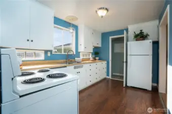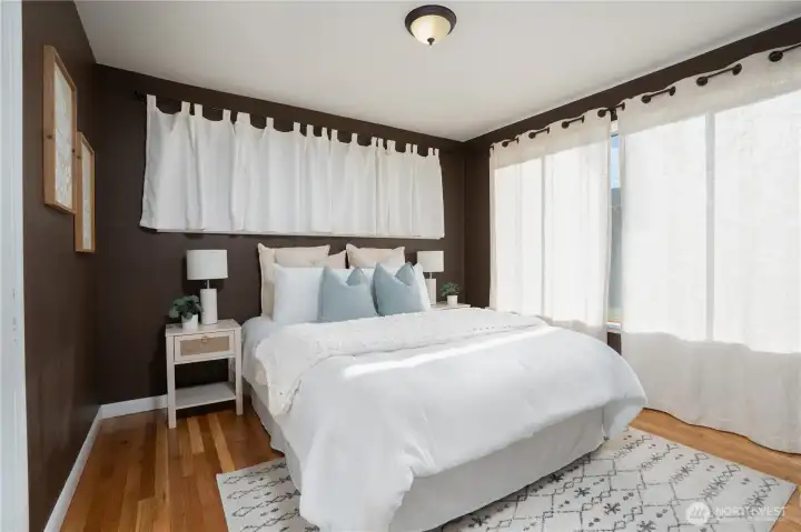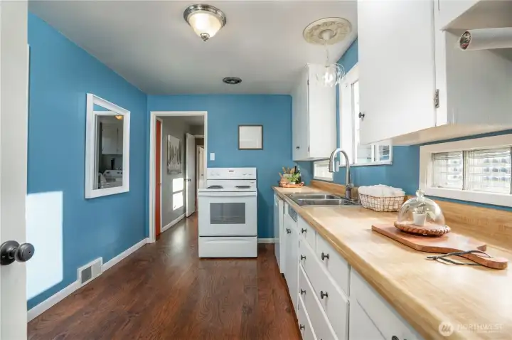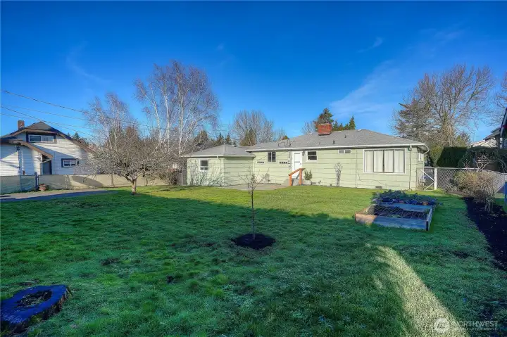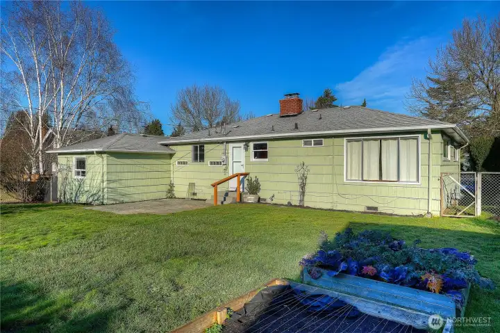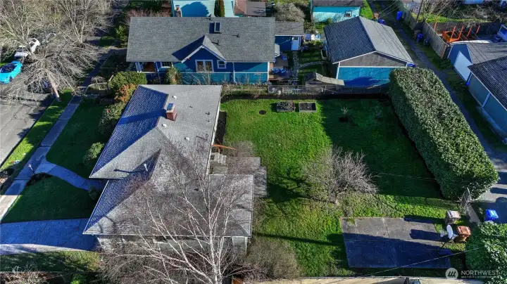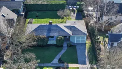 Easy one level living on a giant lot near all conveniences. You'll instantly feel those classic cottage vibes when you cross the threshold. Gorgeous, freshly refinished hardwoods & natural light are the highlights of the open living & dining room area with a fireplace focal point. Kitchen with ample vintage cabinets looks out over the expansive yard. Kitchen leads to spacious and private 3rd bedroom & attached garage. Down the hall are 2 bedrooms, both with loads of windows & garden views. Mudroom off kitchen includes washer & dryer and leads to the backyard & sport court. Spendy updates include exterior chimney rebuild & new side sewer line. Out back - the blank canvas can accommodate so many things - a garage/shop, DADU & garage combo or possibly even 2 additional dwellings. The southern exposure provides that all day sun your dream garden requires. It's YOUR city Oasis so you get to decide! Buyer to verify development options to their satisfaction. Extra deep garage provides excellent storage space. Real opportunity here for your "someday" plans. Alley access means you could also park an RV.