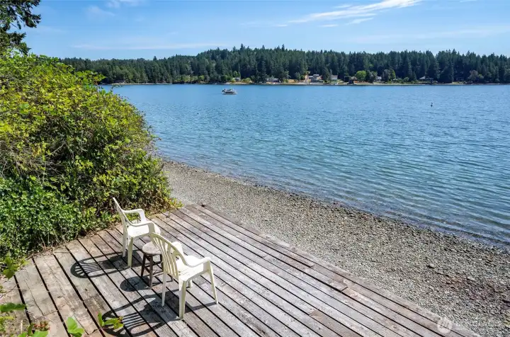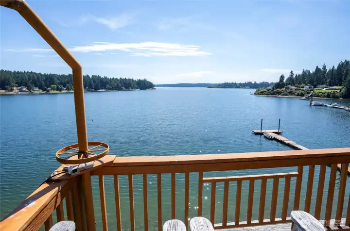 Commanding Southerly view over Filucy Bay with Mount Rainier & Long Branch Marina. This well built efficiently designed home comes with gleaming straight grained fir floors milled locally specifically for this home. Gracious covered deck off front of home will give you that extra space you need to relax in to enjoy the view! well maintained low up keep yard where a game of croquet calls your name. extra detached carport area that also has a finished flex space area that currently is used as bunk room. Come live the dream in this home that was lovingly built and maintained.