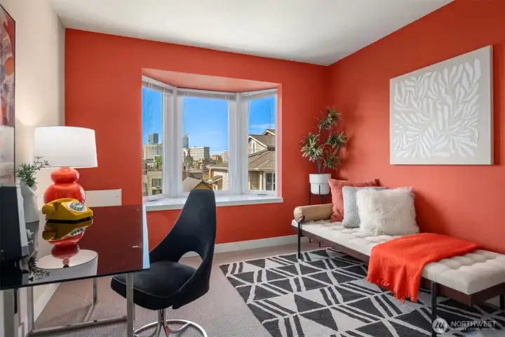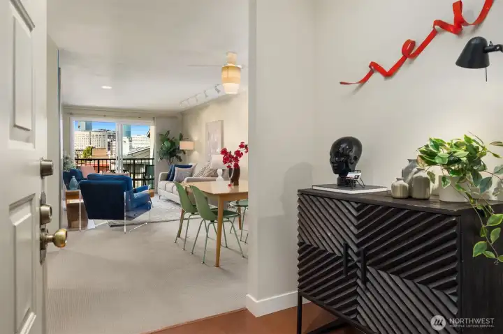 This stylish two-bedroom condo checks all the right boxes—and then some! Situated in a contemporary building on the southern edge of Capitol Hill, this home feels fresh, modern, and effortlessly livable. The upgraded kitchen brings both function and flair with new countertops, cabinets, and high-end appliances. The light-filled, beautifully open living room is anchored by a sleek, wood-burning fireplace and framed by western views of the Seattle skyline—equally perfect for cozy nights in with your honey or hosting friends for a chic dinner party. And speaking of hosting, there is even a clever nook in the living room already plumbed for a bar sink, so making cocktails or mocktails for your guests will be a breeze. Grab a drink and slide open the door to your private balcony to take in the gorgeous Seattle sunsets. The primary suite, with its spacious remodeled bathroom, offers a calm retreat, and the second bedroom and full bath provide flexibility for your guests, an easy work-from-home lifestyle, or whatever else your heart desires. A full laundry room with extra storage sits just off the kitchen—one of those details you’ll appreciate more every day. And the location? SO good. Just blocks to Seattle University and great places like Ba Bar and Boon Boona Coffee. With quick access to downtown, I-5, and the Seattle Streetcar First Hill Line you can get anywhere easily with or without a car. (And by the way—there is also a secure parking spot!) What are you waiting for?