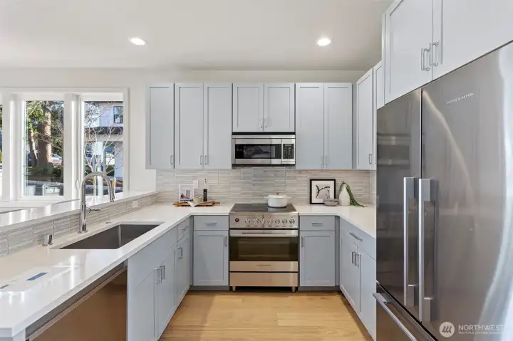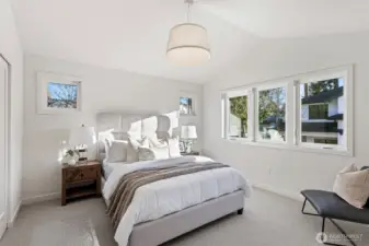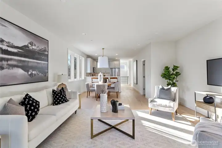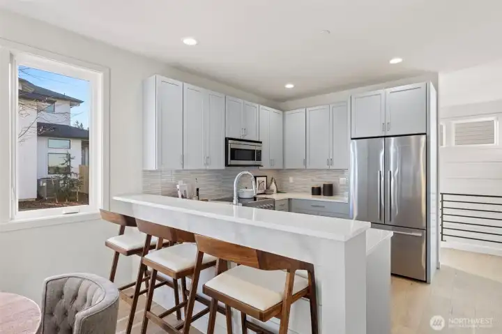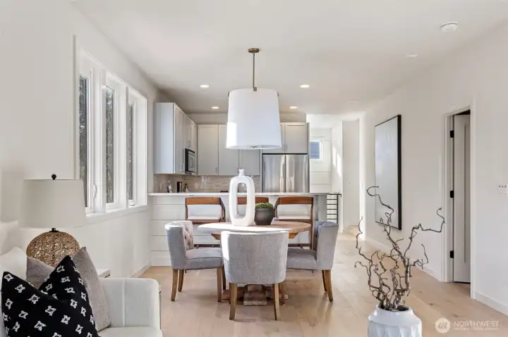 Experience the best of modern living in this exceptional new RK Homes build in South Rose Hill. This thoughtfully designed home offers 2 bed 2.25 baths in an open-concept layout that perfectly combines style and functionality. Showcasing Northwest Contemporary architecture, it features upscale finishes, floor-to-ceiling windows, and an abundance of natural light. The main level boasts a gourmet kitchen with a spacious island and top-tier appliances, ideal for both everyday living and entertaining. Unwind in the luxurious primary suite complete with a walk-in closet and private master bath. Step outside to enjoy your own private fully fenced yard and patio—an ideal spot to relax or host. All this, just minutes from vibrant downtown Kirkland.