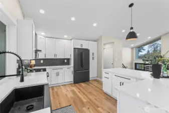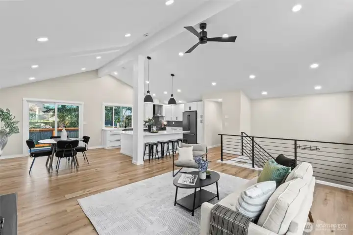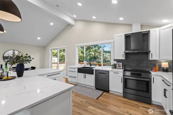 Beautifully updated Bremerton home offering 5 bedrooms and 3 bathrooms, remodeled inside and out. The light-filled main level features floor-to-ceiling windows, vaulted ceilings, an upgraded kitchen, and an open-concept layout that flows seamlessly to the dining area, deck, and large backyard, perfect for entertaining and everyday living. Extensive exterior upgrades include new doors, a new waterproof deck, and fresh exterior paint. Major system updates provide peace of mind with a new septic system, water heaters, furnace, and mini-splits. The lower level with separate entrance offers a private apartment-style living space with its own kitchen, living area, bedroom, and washer/dryer, ideal for multi-generational living or additional income potential. Great location, minutes from Silverdale shopping, hospital and highways. Welcome home!