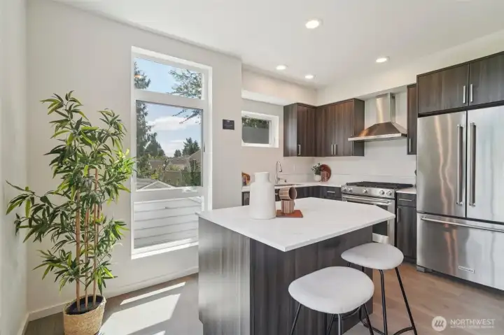 Welcome to this spacious & stylish 2-beds townhome. This end unit offers tranquility, enhanced privacy and appealing roof top views. Enter on the main floor, where you’ll find a welcoming entry area, a private bedroom, a full bath & access to a patio. Perfect for guests and roommates. Upstairs the open-concept living area features walls of windows, hardwood floors, ductless HP mini-split systems & a gourmet kitchen with SS appliances. The 3rd floor is dedicated to the primary suite, complete with a spa-like bath & generous closet spaces. Escape to the large rooftop deck. 1 designated parking space. No HOAS, no sewer capacity charges!