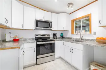 This 1990 2bdr/1.75bth mfg home offers so many possibilities with an attached sunroom the length of the home, a carport, a storage room and a spacious 1440 sq.ft. shop/garage. Brand new kitchen cabinets and countertops just installed making this kitchen extra special. Updated laminate flooring thoughout the LR and DR. The spacious shop/garage has multiple uses with 220 power, a possible paint room and plenty of storage. Nice sized lot too offering a garden space as well as a covered picnic area. A metal roof was installed on the home in 2018, however, no permits were issued, making this a cash offer only. Lake Arrowhead offers a community park w/horseshoe pits, swings, & a covered area. The community also offers the use of the Longhouse, w/bathrooms, showers, a fully equipped kitchen, private boat storage, a boat launch, & three docks for fishing or swimming on the non-motorized boat lake.