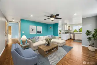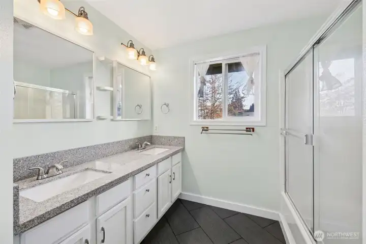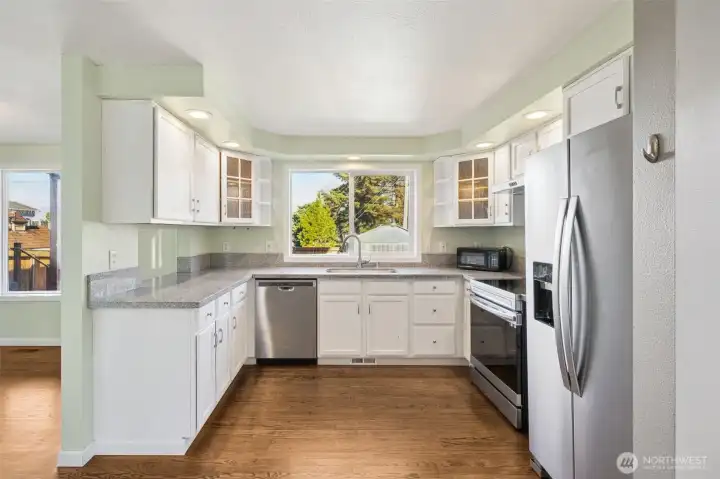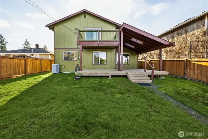 Welcome to this beautifully designed home offering 3 spacious bedrooms and 2.5 baths, where thoughtful design meets everyday comfort. A charming covered front porch invites you inside to an open & airy main level featuring hardwood floors & vaulted ceilings. Multiple living spaces—including a living room, family room, & dining area—create flexibility for both daily living & entertaining, with direct main-level access to a fully covered deck that allows for comfortable, all-weather entertaining & seamless indoor–outdoor living. The kitchen is both stylish & functional, showcasing granite countertops, stainless steel appliances, under-cabinet lighting, & a pot filler over the stove, making it ideal for cooking. The primary suite is a true retreat, offering an ensuite bath with radiant floor heating, a generous walk-in closet, & access to a private deck with stunning ocean views & partial mountain views—a peaceful escape to enjoy morning coffee or evening sunsets. Recent updates add value & peace of mind, including a new HVAC system, air conditioning, updated fencing, while the freshly painted exterior enhances the home’s overall curb appeal. The fully fenced yard provides a private outdoor setting, perfect for relaxing or spending time with guests. Conveniently located near Ruston, shopping, dining, parks, and freeway access, this home offers the ideal combination of comfort, functionality, & location. An exceptional opportunity—schedule your private showing today.
