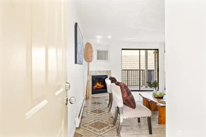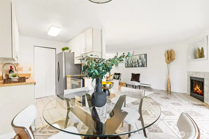 Adorable, beautifully updated 2 bed, 1.75 bath condo with a smart layout. Primary bedroom features a full private bath, plus a second bedroom & bath. Cozy living room with wood-burning fireplace and a very private balcony. In-unit washer and dryer, and additional storage at the balcony. Outdoor pool, tennis, basketball courts and Clubhouse across the building. HOA dues covers Water/Sewer/Garbage and the exterior maintenance. No RENTAL CAP—perfect for homeowners or investors. Two excellent parking spots right in front of the building. Easy access to 167/405/I-5, shopping, Boeing & UW Medical. Welcome Home!