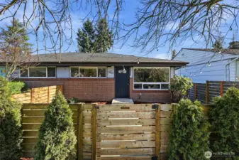 Mid-century modern townhome in convenient Highland Park. Open concept living with a bright living room, dining area, and kitchen featuring stainless appliances and engineered hardwoods throughout. The thoughtful layout offers two bedrooms upstairs, while the private lower-level primary suite includes an en-suite bath, spacious media/rec room, and separate exterior entry—ideal for guests, live/work space, or added flexibility. Newer windows, roof, and exterior siding provide peace of mind. Designed to live like a single-family home, the property offers a private fenced yard, excellent separation of space, and a quiet setting. Enjoy a neighborhood that feels tucked away while still walkable to coffee, parks, and transit, with quick access to I-5, downtown Seattle, stadiums, Alki, and Lincoln Park. Seller inspected. No HOA and no dues.