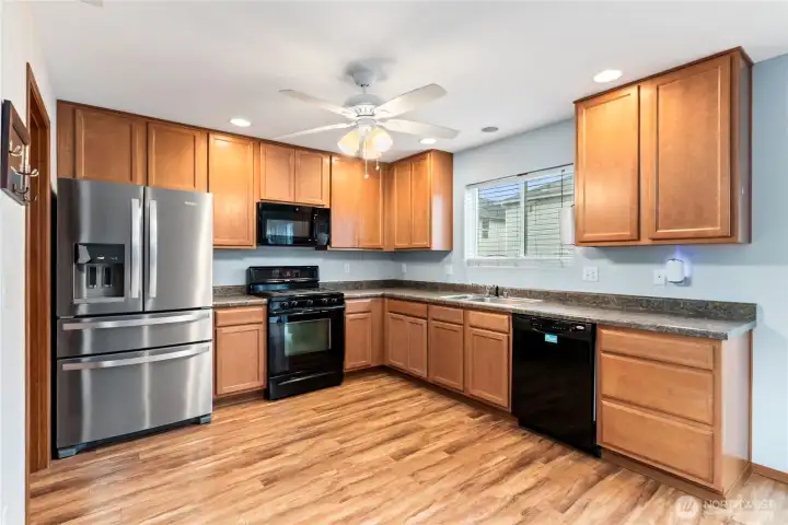Welcome Home to this beautifully updated residence tucked away on a quiet cul-de-sac within a park-filled neighborhood. Ideally located mere minutes from JBLM, this home offers the perfect balance of comfort, convenience, and refined living. The open-concept main level features a spacious living area, elegant half bath, and a two-car garage conveniently located off the expansive kitchen, which is appointed with a gas range and walk-in pantry. Upstairs, the private primary suite serves as a serene retreat, complete with a cozy gas fireplace, spa-inspired bath, and an expansive walk-in closet enhanced by a custom California Closets installation. The upper level is finished with brand-new carpet and also includes a thoughtfully designed laundry room with custom cabinetry. Along with two additional bedrooms featuring walk-in closets, there is also a built-in Murphy bed and desk provide a flexible space ideal for guests or a refined home office. An exceptional opportunity for buyers seeking an effortless commute to base without compromising on style, comfort, or quality. The fully-fenced yard is perfect for pets and easy maintenance. This is truly the best deal on the market! Schedule your private viewing today.