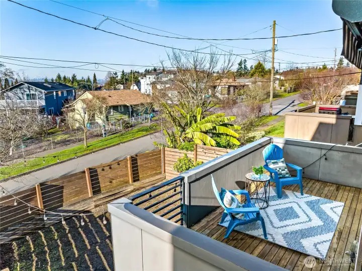 Detached single-family on the western slope of Beacon Hill w glorious views of the Olympics. From noon to golden hour the home is bathed with light, culminating in spectacular sunsets. A refreshing alternative to many modern builds, this home offers a highly functional floor plan.The living/dining/kitchen great room feels open, usable, and comfortable for large gatherings. Kitchen has abundant solid maple cabinetry, plenty of counter space, eating bar, and newer appliances including induction cooktop. Separate entry hall w main floor half bath for guests and large closet. All bedrooms are upstairs. This includes an entire primary wing, composed of a large bath with separate soaking tub, private and secluded sleeping area, closet organizer, and additional den ideal for a home office or nursery. Two additional beds and a full bath also upstairs, creating a practical and cohesive layout. Laundry is on the bedroom level for everyday convenience. Addl features of note include RARE two-car garage w alley access, bamboo floors, brand new upgraded carpet, Juliet balconies, newer A/C, large deck with a retractable awning. Level, fully fenced west-facing yard offers sunny garden space and a blank canvas. No HOA, sewer cap paid off. One-minute freeway access! Easy walk to neighborhood fave Flora Bakehouse, Cleveland HS, plus nearby walkable Georgetown for dining, shopping, culture. Quick trip to VA hospital, downtown, airport, Costco. An exceptionally livable and convenient location!