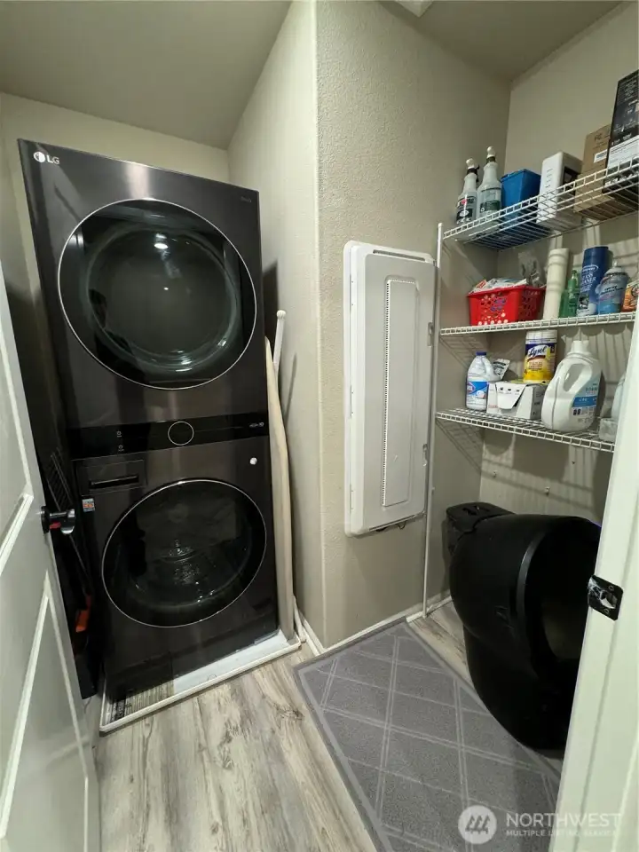 Discover this beautifully built 3-bed, 2.25-bath residence in charming DuPont, WA, offering 1620 sqft of modern living space. Situated on a desirable corner lot, this home welcomes you with premium LVP flooring that leads to an expansive open-concept layout. The kitchen is a true culinary delight, featuring stainless steel appliances, quartz countertops, a breakfast bar, and a spacious island perfect for gatherings. Enjoy year-round comfort with central A/C and the convenience of an upstairs laundry room equipped with a washer and dryer. This home is smart wired and includes an EV charging hook-up, catering to modern technological needs. The creatively landscaped exterior boasts a sprinkler system, ensuring low-maintenance upkeep all year long. Fully fenced backyard, attached 2 car garage with driveway parking. Close to JBLM, I-5, shopping, parks and so much more! A must see!