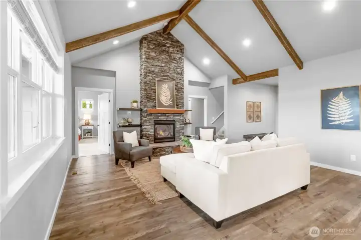 Welcome to 1963 Bluestem Street. This beautifully maintained home is located in a quiet, sought-after Lynden neighborhood, just minutes from downtown. Built in 2018, this light-filled residence offers convenient main-level living with vaulted ceilings and an open-concept design. The spacious kitchen features stainless steel appliances and quartz countertops and opens to the inviting living area with a gas fireplace, ideal for everyday living and entertaining. The main-level primary suite includes a walk-in closet and a spa-inspired bath with a tiled shower. Upstairs, a versatile bonus room provides flexible space for a home office, media room, or guest area. Enjoy outdoor living on the back deck overlooking the well-kept yard, or relax in the hot tub after a long day. This home combines comfort, quality, and an excellent location within walking distance to Lynden Middle School and the neighborhood park.