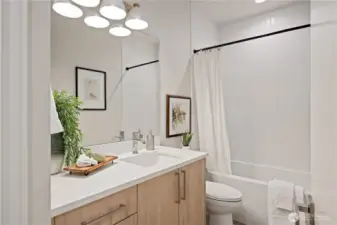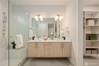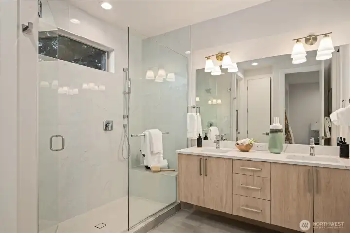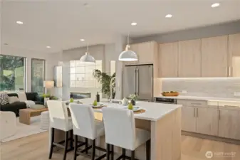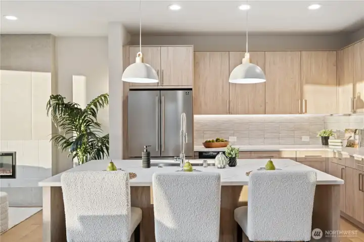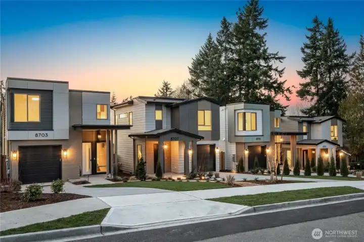 Merit Homes presents Wilder Lot 4! The 4-home community in desirable rose hill offers this thoughtfully designed two-story floorplan offering a reduced footprint without sacrificing luxury or livability. This home features 3 bedrooms, 2.5 bathrooms, a bright, open layout, and an attached EV-ready garage. Step inside to a light-filled open-concept main level ideal for both everyday living and entertaining. The gourmet kitchen showcases a quartz slab island with bar seating, custom soft-close cabinetry, dual-zone wine chiller, and a premium appliance package highlighted by an induction range. The great room is warm and inviting with a sleek contemporary linear electric fireplace and seamless access to the outdoor patio. A stylish powder bath completes the main floor, perfect for guests. Upstairs, the primary suite is a true retreat, filled with natural light and featuring a spa-inspired walk-in shower with bench seating and dual shower heads, plus a walk-in closet with custom shelving. Two additional bedrooms provide ample space, complemented by a full secondary bathroom and a well-appointed laundry room with quartz countertops and upper and lower cabinetry. Ideally located for effortless commuting with quick access to major employers including Microsoft, Meta/Facebook, Amazon, and EvergreenHealth. Enjoy close proximity to Kirkland Costco, The Village at Totem Lake, parks, walking trails, and top-rated schools.