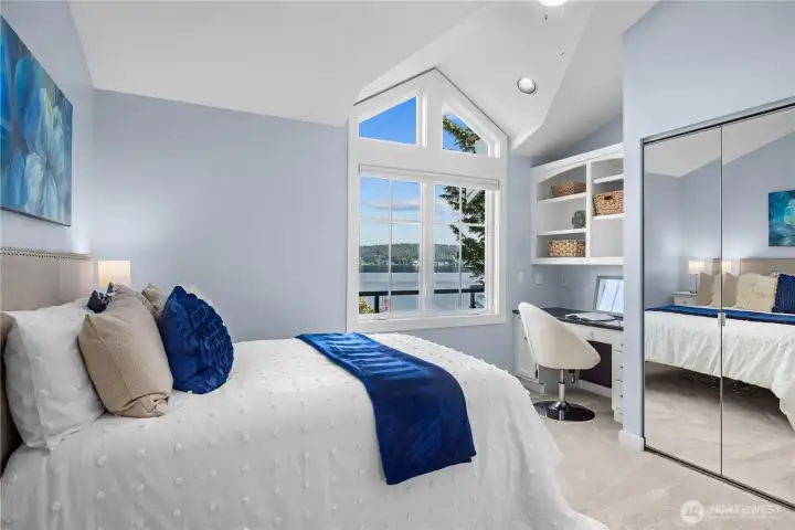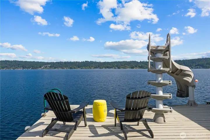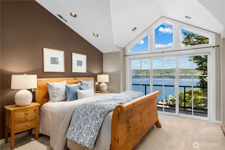 Nestled on 50’ of lakefront, this Baylis Architects home, remodeled in 2004, turns everyday living into lakeside adventure. Launch from the dock or soak in the hot tub as golden sunlight dances across the water. Blooming hydrangeas and fruit trees frame a vibrant lawn alive with natural beauty. With granite counters and a farmhouse sink, the open kitchen flows toward the deck for sunset cocktails overlooking shimmering water. Upstairs, the primary suite with fireplace and jetted tub offers serene retreat. A bonus room with wet bar and wine cellar invites entertaining. Steps away, a 3-car garage hosts a charming ADU with loft, while a rare boathouse with functional tram houses your boat, completing this extraordinary waterfront lifestyle.
