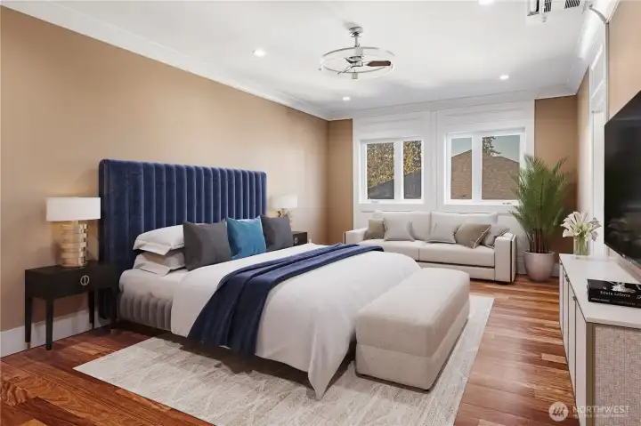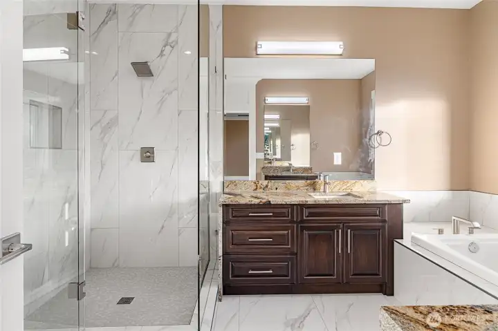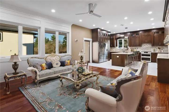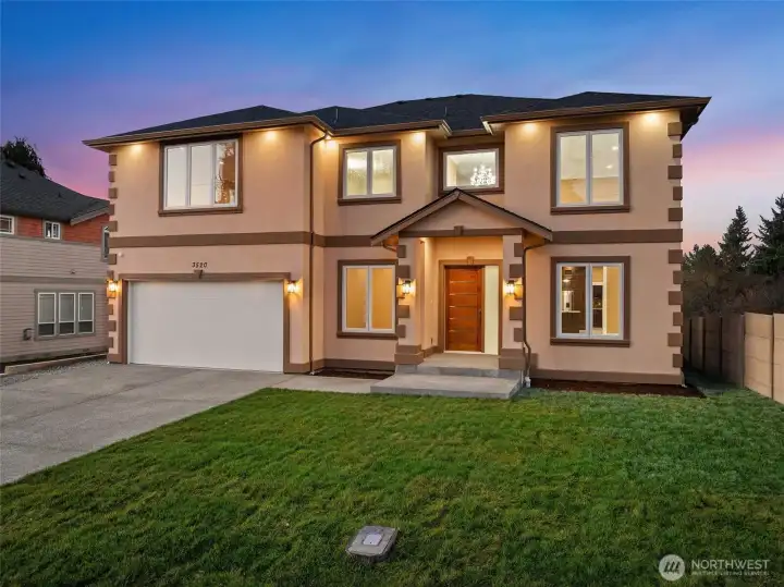 ASK ABOUT CLOSING COST CREDITS. Brand new construction luxury residence offering exceptional craftsmanship and impressive functionality. A grand entry with soaring ceilings and elegant tile flooring introduces refined finishes, while rich ¾-inch solid exotic hardwoods flow through the main living areas and custom built-in cabinetry features soft-close doors and drawers throughout. The main level includes a bedroom with its own ensuite bath, plus a versatile office and a convenient ¾ guest bath. The chef’s kitchen showcases premium Café appliances, a professional-grade range, and a 64-inch Fisher & Paykel side-by-side refrigerator, complemented by a fully equipped auxiliary cooking area with its own sink, range, and microwave—ideal for entertaining. High ceilings, multiple ceiling fans, and a high-efficiency ductless mini-split system with individualized zones provide comfort year-round. Upstairs, four spacious bedrooms each offer a private ensuite bath, bringing the total to 5 bedrooms and 6 bathrooms PLUS an office, enhanced by custom built-in closet systems. The primary suite features a jetted jacuzzi tub, while the junior primary boasts a soaking tub and walk-in shower. Additional highlights include EV charging, covered outdoor space perfect for entertainment, and a striking stucco exterior set on a huge lot with landscaped yard space. Near downtown Seattle, major shopping, Sea-Tac Airport (outside flight path), and Tacoma. Located near community of similar homes. NO HOA!
