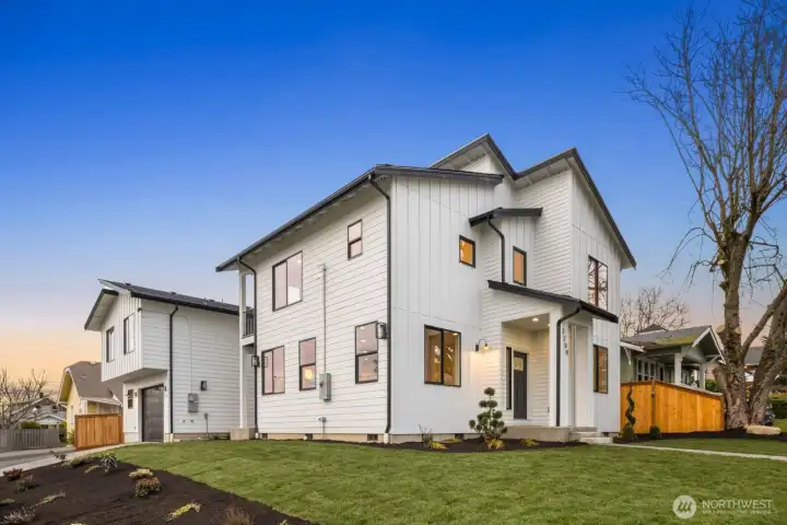 Exquisite new construction in an exceptional Tacoma location, offering refined design and captivating city views. Every detail has been thoughtfully curated, featuring high-end finishes and a seamless open-concept layout with a ton of natural light. The chef-inspired kitchen flows effortlessly into elegant living and dining spaces, ideal for entertaining. Retreat to well-appointed bedrooms and baths that deliver comfort and style with views of downtown Tacoma. A private 1-bedroom DADU provides a rare luxury—perfect for guests, rental or multigenerational living. Just minutes from downtown, dining, and commuter routes, this home delivers elegance, convenience, and long-term value. Come and tour today!