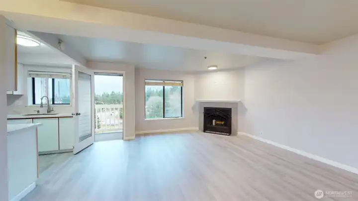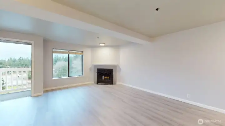 You will appreciate this clean vacant Top Floor 2-bedroom, 2 full bath home with territorial & partial views of the Puget Sound and Olympic Mts. The Living Room has a wood burning fireplace w/Engineered hardwood flooring throughout the living area. The spacious Primary Bedroom features 2 closets and a full bath. The 2nd Bedroom has a double closet, and the bedrooms have wall to wall carpet. The appliances that stay include stove/range, Microwave, Refrigerator and Dishwasher. There is a 2-car tandem assigned Carport. Storage unit is on the deck. HOA covers water, sewer, and garbage. Ideal for investors as there is not a rental cap. You will find parks, a soccer field, schools, shopping, and eateries and public transportation nearby.