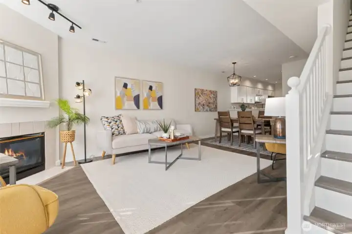Enjoy comfort, convenience & connection in this beautifully updated townhome in a perfect location close to everything! HOA dues cover water/sewer & garbage too! Low maintenance living is yours in the Tall Firs community, whether you’re commuting, entertaining or enjoying everyday life close to it all. Grocery, coffee, dining & bus lines are just steps away. Inside, a bright open-concept main level is designed for both daily living & entertaining w/kitchen, dining & living areas flowing seamlessly together. Large windows let in abundant light! The remodeled kitchen features brand-new white cabinetry (also in 1/2 bath), stainless sink & nickel faucet, w/the white appliances, new flooring & paint throughout blending perfectly. Cozy gas frplc anchors the living area. Upstairs, primary suite has large closets & an updated ¾ bath along w/backyard views. The 2nd bdrm is generously sized & served by a full hallway bath— also ideal for guests or flex space. Step out to your own backyard patio, perfect for summer BBQs, morning coffee, or evening relaxation. Patio opens to a shared lawn area, offering a rare sense of green space for townhouse living. Spacious 2-car tandem garage includes an EV charger outlet. Ample room for parking, storage or convert a portion to a home office, gym, or bonus w/the addition of a wall & door. Just 10 minutes to Renton Landing, Lake Washington & major freeways, this commuter-friendly location lets you spend less time driving and more time enjoying life!