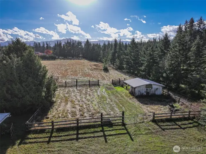 Welcome home to everything on your checklist! Clean, private end of the road, gated, circular driveway, mountain view, orchard, outbuildings, PUD water plus Agnew Irrigation & a beautiful, fenced pasture - horse tested & approved. But wait, there's also a house that's freshly painted inside, lots of windows & storage, brand new carpeting, new fans in both baths plus new toilets, new blinds in primary & new external door locks throughout the house. Bonus useable outbuildings include two-plus car garage, stalls, workshop & mini-barn. Fenced dog or chicken area. A peaceful, rural getaway disguised as a home sweet home. Of the three car garages, one has an unpaved floor like garden shed and leads directly from the driveway to the garden and towards the pasture. This property is an established equestrian property with decades of horses living on it. The outbuildings are in very good condition. Peaceful, quiet Agnew location conveniently located between Sequim and Port Angeles.