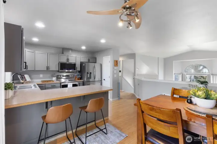 Tucked away at the end of a quiet cul-de-sac, this spacious home welcomes you into a stunning entry-level living room with soaring ceilings, an open feel, and natural light that immediately sets the tone. The upper level features three bedrooms, including the primary suite, along with a beautifully remodeled full bathroom, kitchen, dining area, and pantry. Step outside to the brand-new deck, perfect for summer BBQs or relaxing evenings overlooking the yard. Thoughtful updates throughout make this space feel fresh, functional, and move-in ready. Downstairs, you’ll find a versatile rec room, a fourth bedroom with a ¾ bath, and a mudroom with direct access to the fully fenced, manicured backyard. Just a half flight below the rec room is the ultimate bonus space: a dedicated den designed as a true sports cave, complete with a bar setup and plenty of room for game days, movie nights, or hosting friends. Located minutes from shopping, dining, local schools, and within easy reach of the outlet mall, this home offers space to spread out, incredible entertaining areas, and a quiet neighborhood setting. A rare cul-de-sac find in Marysville that truly has it all! Pre-inspected!