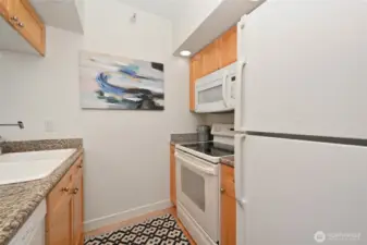 Amazing location in the heart of the vibrant Admiral District. This well designed one bedroom unit features gas fireplace, exterior deck, granite counter tops and lots of updates. The building features all steel and concrete construction, 2 elevators, controlled access parking, fitness center and a 4000sq ft roof top deck with panoramic views of city, sound and mountains. Located across the street from Metropolitan Market and Carnegie Library. Strong HOA
