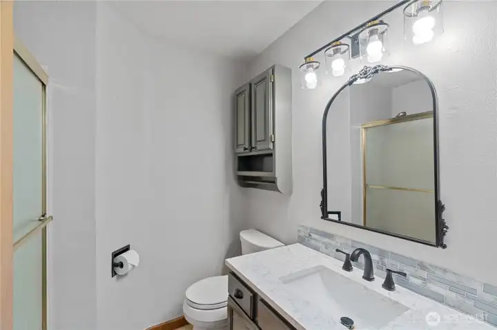 Updated three bedroom, one and a half bath single level rambler set on a beautifully landscaped double lot in a quiet Montesano neighborhood with creek frontage that provides a natural backdrop, calming sound, and abundant wildlife. The easy flow floor plan offers two distinct living spaces and large picture windows that bring in strong natural light while preserving privacy. Recent seller updates include fresh interior paint, major kitchen improvements, bathroom updates, new fencing, and new carpet throughout, creating a clean move in ready presentation. The kitchen offers generous counter space and abundant cabinetry. Year round comfort is supported by a ductless heat pump, a free standing gas stove, and an updated electrical panel. Outdoor living is thoughtfully designed with a fenced area in the backyard for pets, a wide access gate, a covered area, and a large concrete patio, with the expansive back and side yards overlooking the creek and surrounding natural setting. The two car garage includes extra storage and a finished bonus room above, where rumor has it band members of the Melvins and Nirvana once used the space for making music. A black topped driveway provides RV parking with electrical hookup. Conveniently located just minutes from downtown Montesano, nearby parks, and Lake Sylvia.