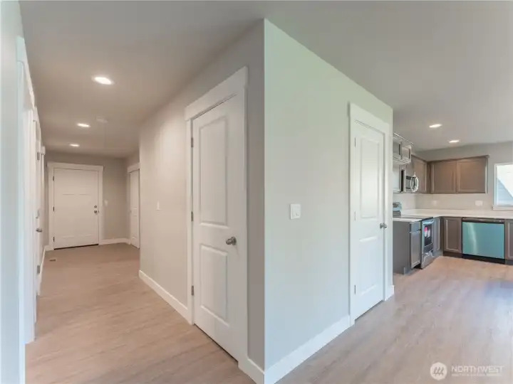 Welcome to Maryhill Estates East (Phase 2), one of Sage Homes’ newest and most desirable communities in East Wenatchee, ideally located just minutes from shopping, schools, and everyday conveniences. This thoughtfully designed, single level home showcases the popular Cashmere floor plan, offering an inviting open concept layout that seamlessly connects the kitchen, living room, and dining area perfect for both everyday living and entertaining. The home features 3 comfortable bedrooms, 1.75 bathrooms, and a 2 car garage. Durable and stylish luxury vinyl plank flooring flows throughout the main living areas, while plush carpet adds warmth and comfort to all bedrooms. The primary suite is a relaxing retreat, complete with a walk in closet and ensuite bath. The kitchen is beautifully appointed with dark stained cabinetry, quartz countertops, and ample workspace for cooking and gathering. Energy-efficient features include Energy Star® Low-E windows, a high efficiency heat pump, and a programmable thermostat, helping to enhance comfort while keeping energy costs in check. Enjoy professionally landscaped front yard and stunning views of the Wenatchee Valley and Cascade Foothills. Completion date is 02/26/2026. Interior photos are of a similar home & may have different colors or finishes.