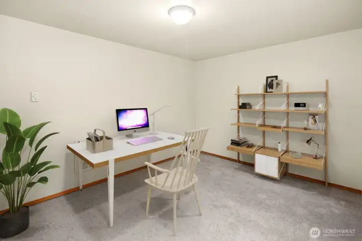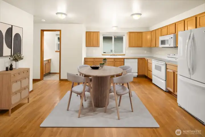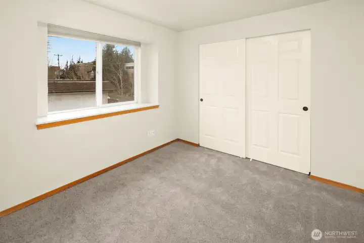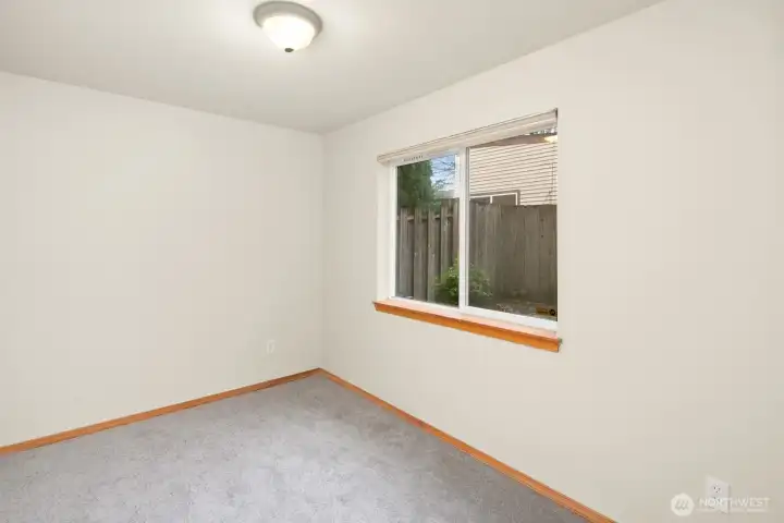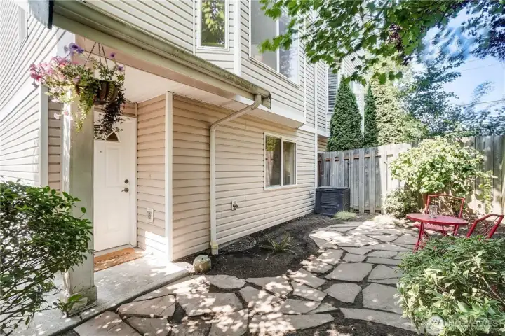 Light and bright end unit townhome with private fully fenced backyard and flagstone patio garden for entertaining or just relaxing. Oversized living room with hardwood floors and cozy gas fireplace. Kitchen with eating nook. All new carpet and interior paint. Main level bedroom or den. Large utility room with built-ins. Attached garage with easy in and out access. Excellent location for commuting. Close to bus lines, Hwy 99, I-5 and Light Rail. No HOA’s