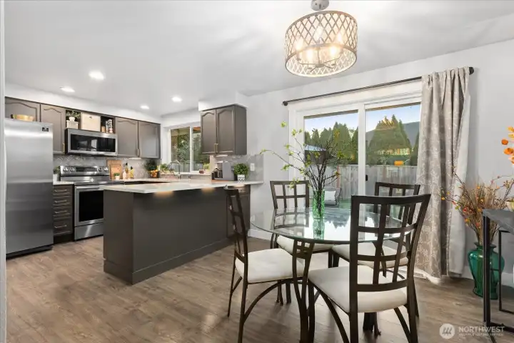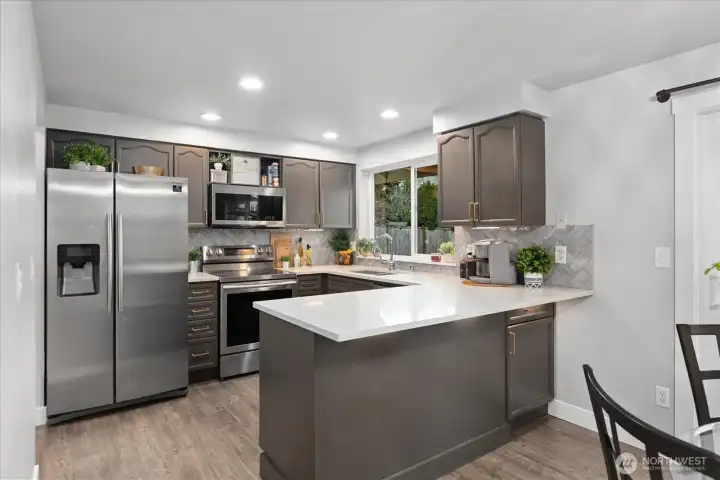 Stunning, extensively updated Lake Stevens rambler showcasing thoughtful upgrades and high-end finishes throughout. This 3-bedroom, 2-bath home offers a highly desirable single-level, open-concept layout ideal for comfortable everyday living and effortless entertaining. The chef-inspired kitchen features quartz countertops, updated cabinets in designer colors, tile backsplash, and stainless steel appliances, flowing seamlessly into the main living areas. Newer flooring, refreshed interior and exterior paint, updated doors and trim, rocker light switches, and stylish modern light fixtures create a cohesive, move-in-ready feel. The spacious primary suite includes a private en-suite bath and walk-in closet, offering a relaxing retreat. Recent major improvements include new windows and a sliding door, a new garage door, and fresh landscaping. A pre-inspection has already been completed, providing buyers added confidence and peace of mind. Step outside to enjoy a fully fenced, west-facing backyard that captures afternoon and evening sun, along with an extended patio ideal for entertaining, dining, or unwinding. The expanded driveway provides ample parking for multiple vehicles, a boat, or small RV. Ideally located near parks, walking trails, shopping, and everyday conveniences, and served by highly regarded Lake Stevens schools, this beautifully maintained rambler blends style, function, and location into one exceptional opportunity.